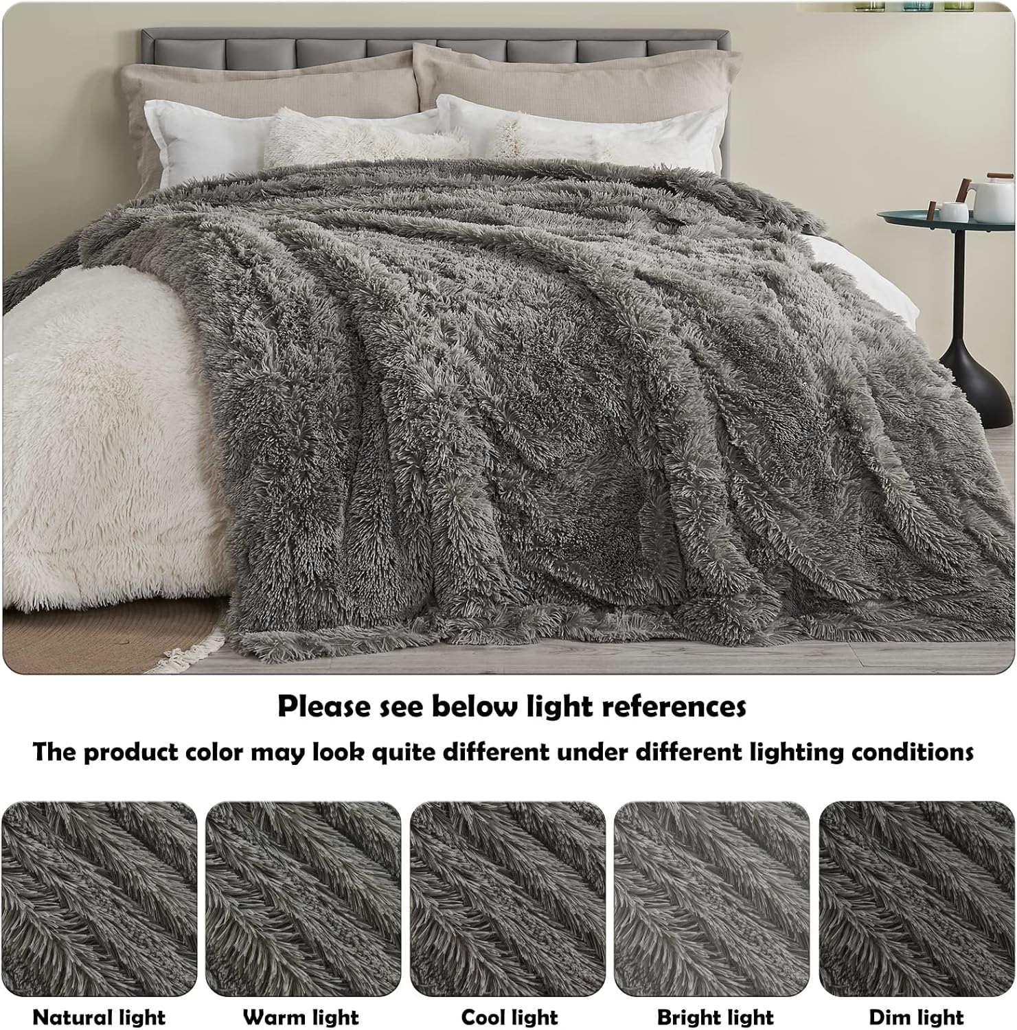 GONAAP Fuzzy Faux Fur Throw Blanket Twin Size Light Grey Super Soft Cozy Plush Fuzzy Shaggy Blanket for Couch Sofa Bed (Light Grey, Twin(60"x80"))