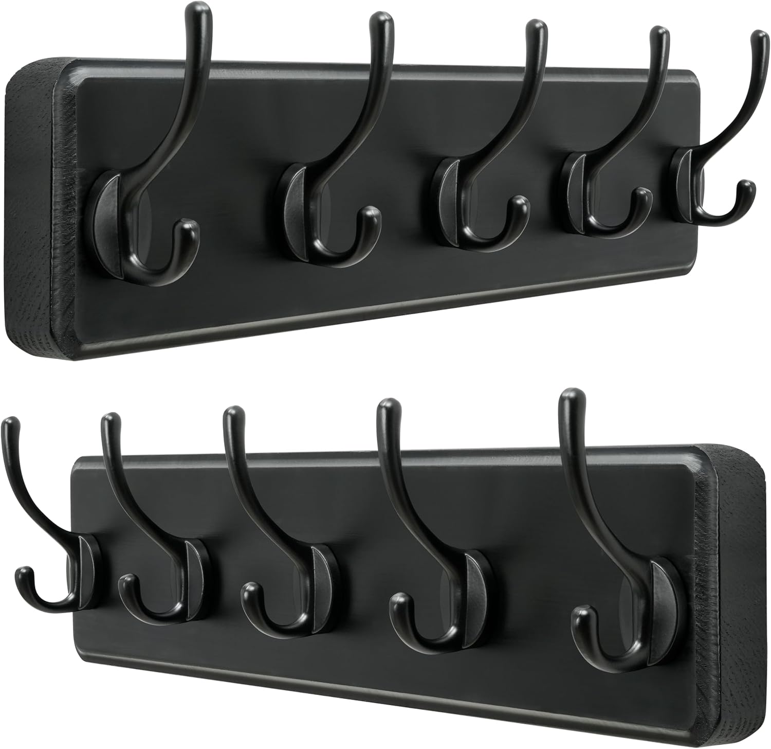 Dseap Wall Mounted Coat Rack: Patented, Heavy-Duty, 17.4" Long 5-Double-Hooks Wooden Hanger Rail for Winter Coats, Hats, Jackets, Clothing - Black, Pack of 2