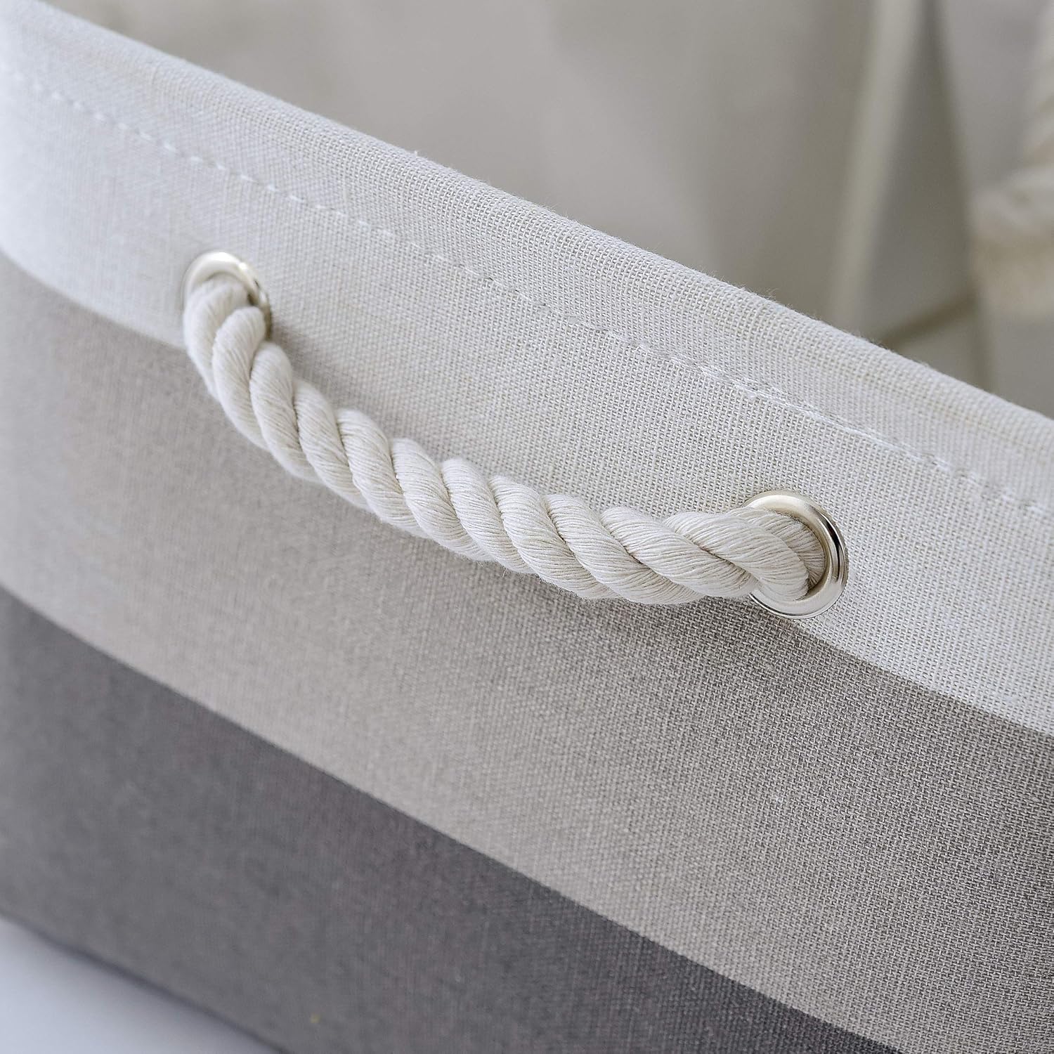 - Fabric Material: Storage basket is constructed of linen + EVA Inner, lined with soft fabric, itβs easy to clean. Metal eyelets and sturdy handle make it easy to carry or pull off and out of shelves