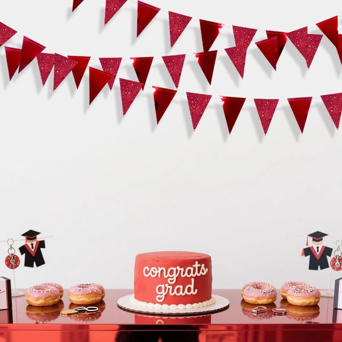 30Ft Red Party Decorations Glitter Metallic Paper Triangle Banner Flag Pennant Bunting for Graduation Wedding Engagement Anniversary Bachelorette Birthday Bridal Shower Valentines Hen Party Supplies