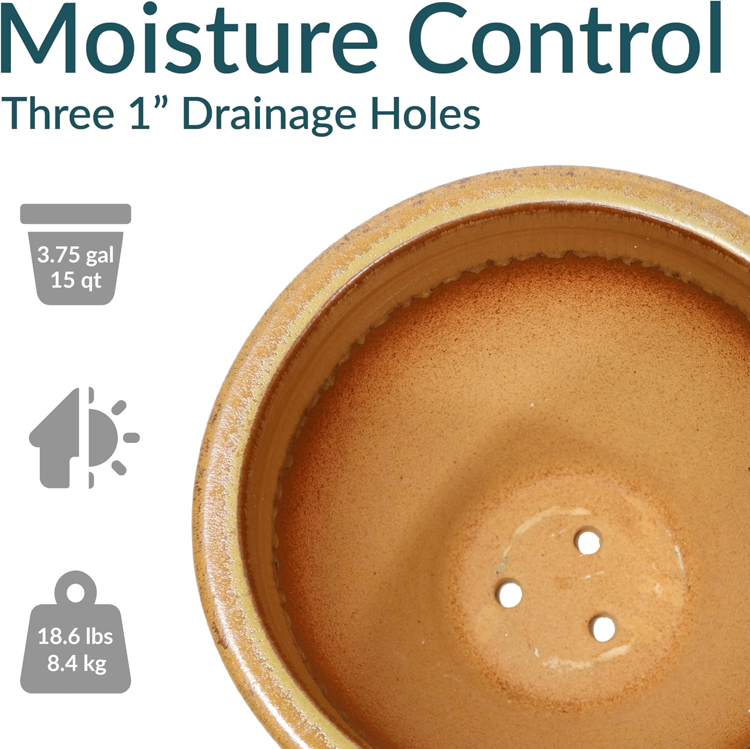 - LARGE SIZE FOR GROWING PLANTS: This large plant pot features a spacious top diameter and 3.75-gallon soil capacity that provides ample space for plants to grow. The planter has a 14.5β outer top diameter (12.75β inner diameter), a 9β outer base diameter (7β inner base diameter), an 11.25β outer H (11β inner H), and weighs 18.6 lbs.