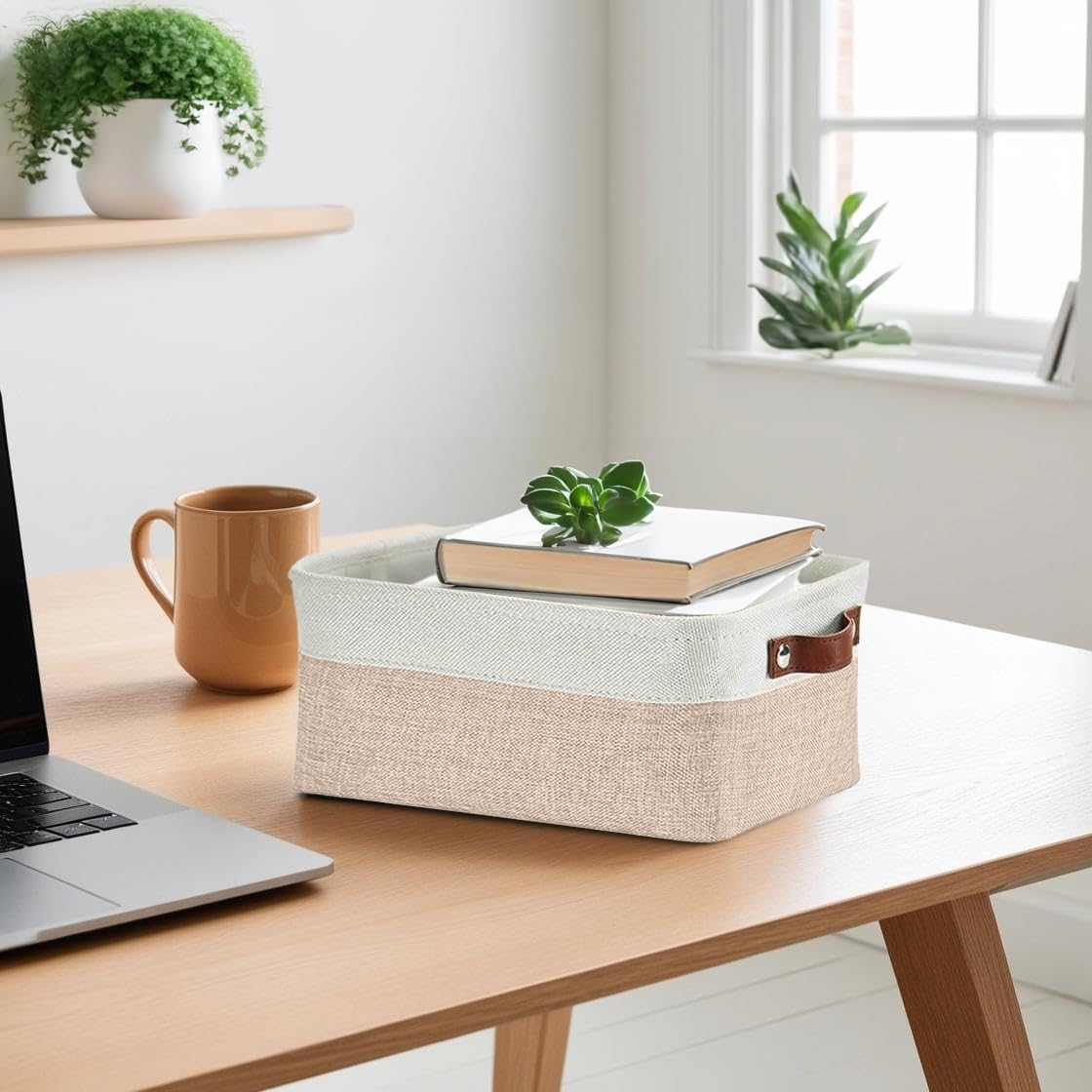 DECOMOMO Small Storage Basket, Closet Storage Bins, Baskets for Organizing Shelves (Beige & White, Small - 6 Pack)