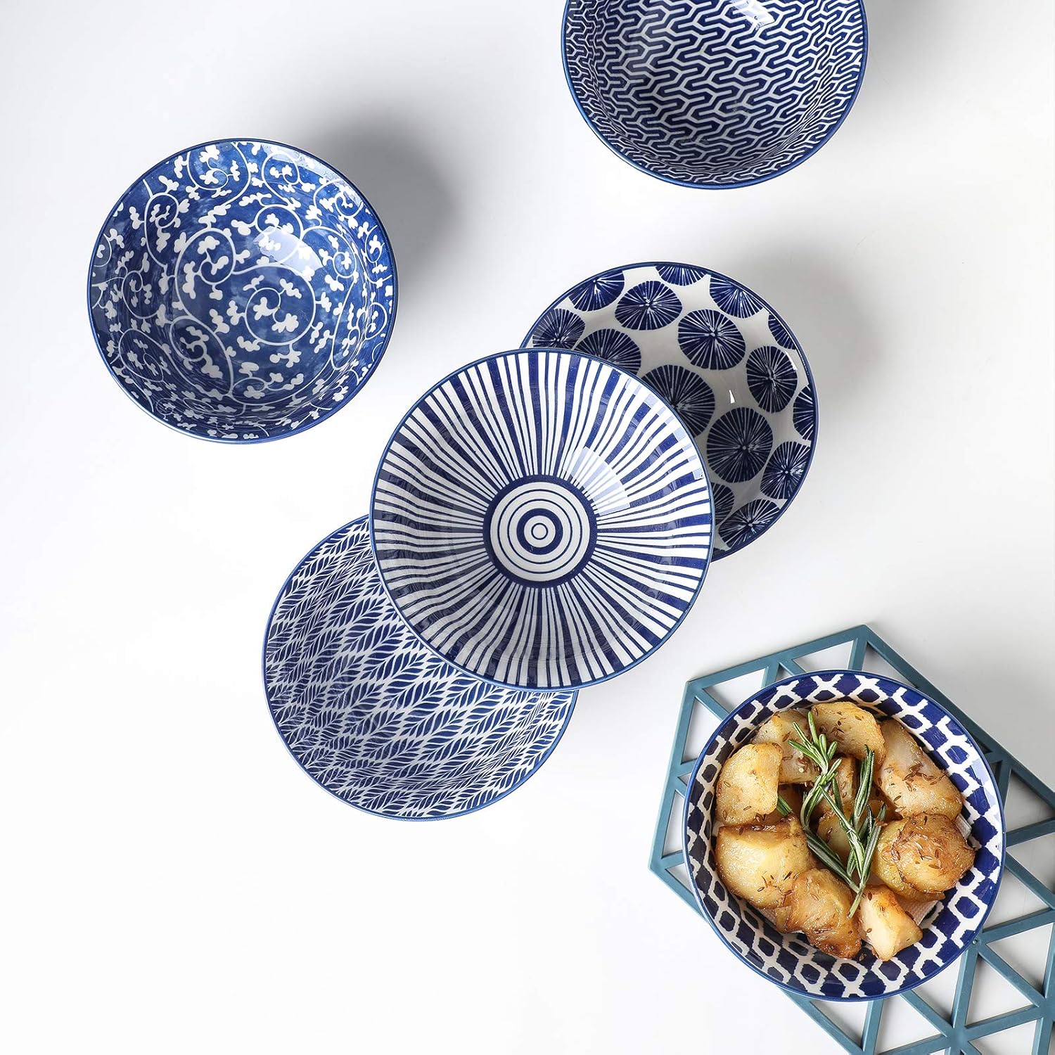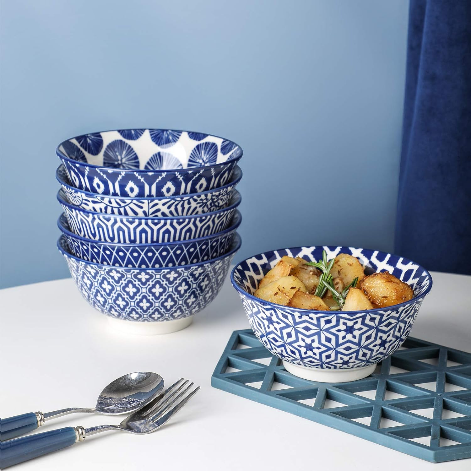 Selamica Porcelain 11oz Ice Cream Bowls Set of 6, Small Bowls, Ceramic bowls for Dessert, Ice Cream, Vintage Blue