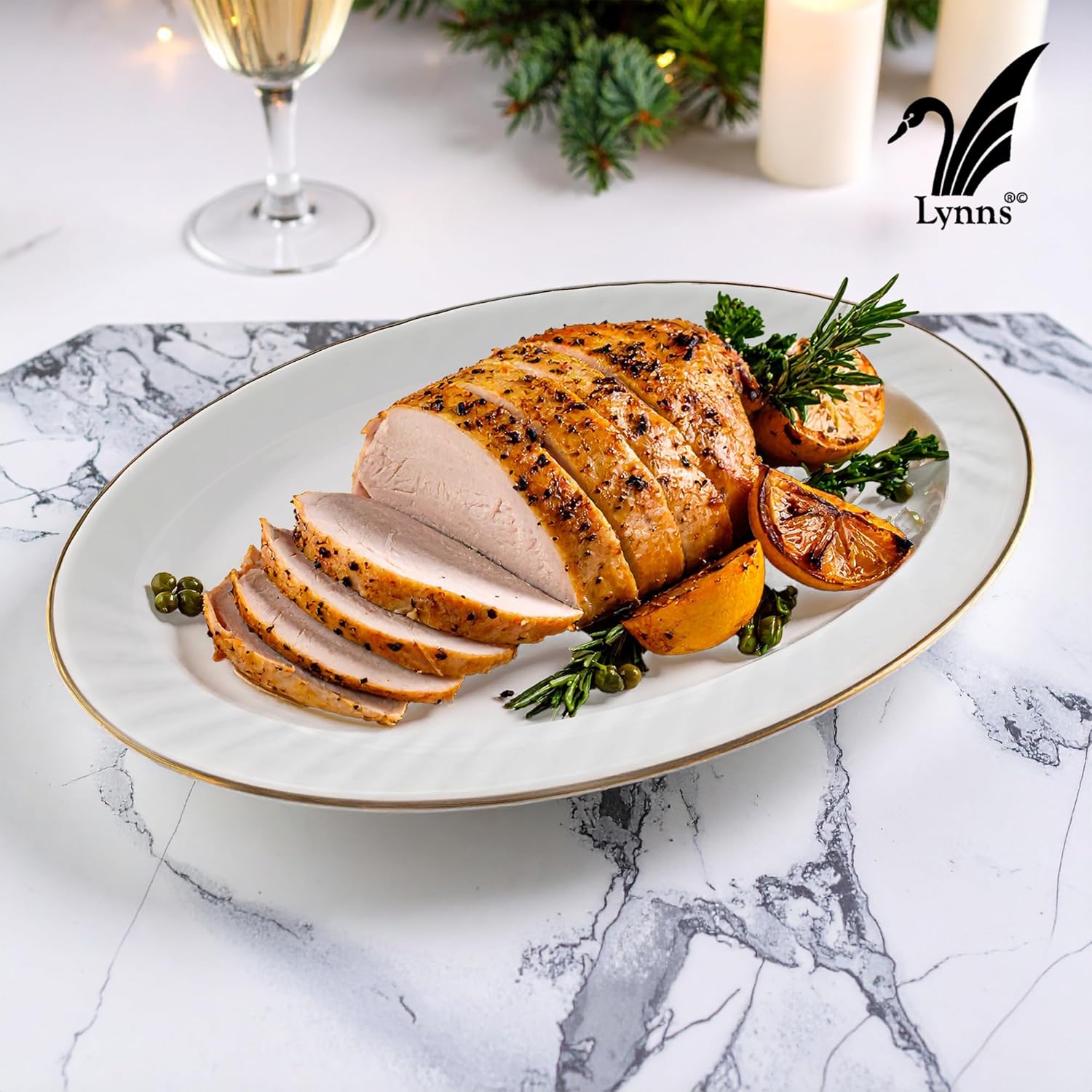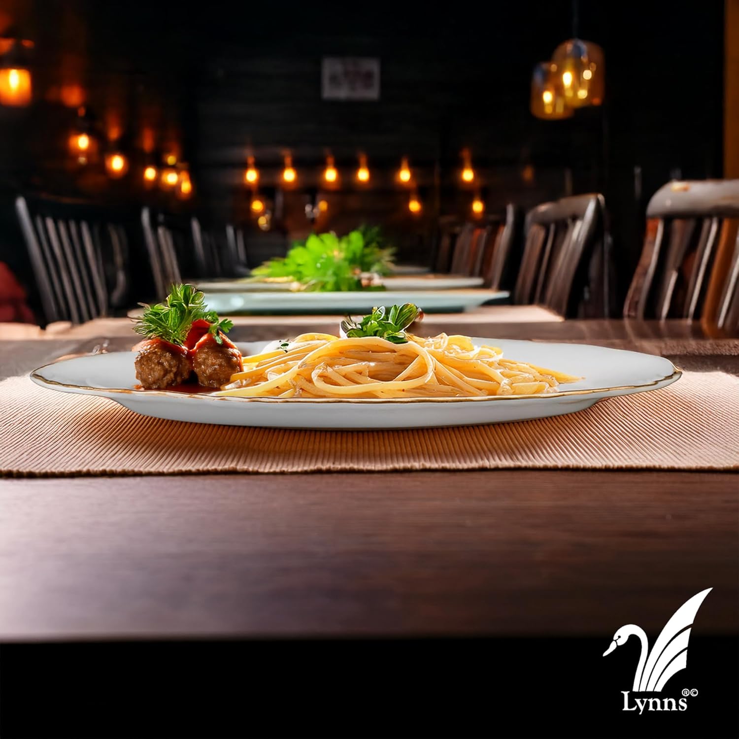 Lynns Paradise Imperial Gold 14-Inch Oval Platter, Set of 2, White; Heavy Duty; Chip Resistant; Lead and Cadmium Free; Freezer to Oven Safe up to 500°F