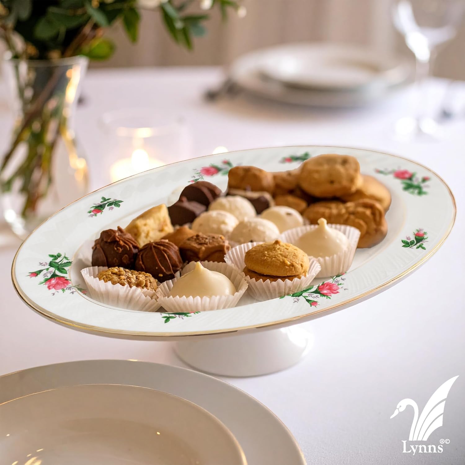 Lynns Paradise Vintage Rose 14-Inch Oval Platter, Set of 2, Pink; Heavy Duty; Chip Resistant; Lead and Cadmium Free; Freezer to Oven Safe up to 500°F