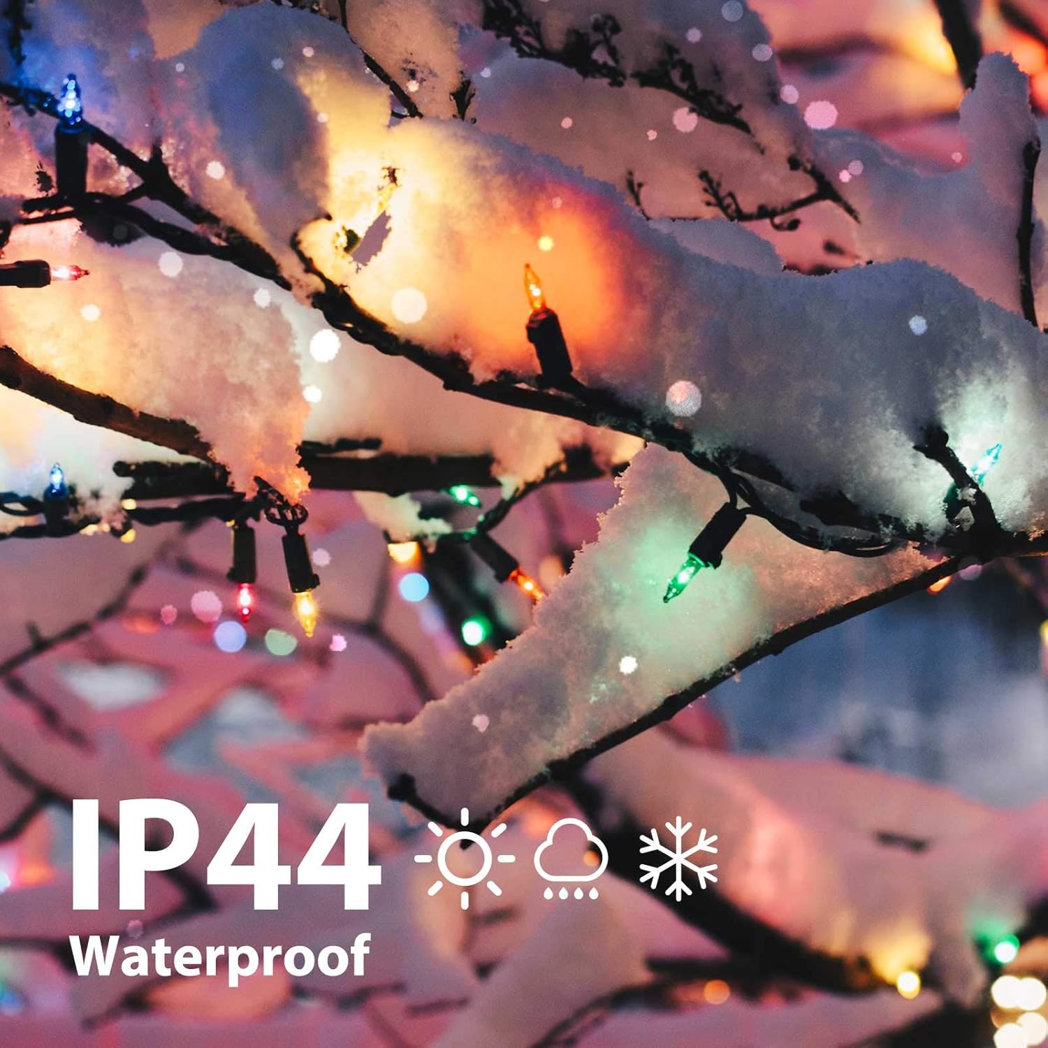 - Premium and Safe: The christmas lights are made of great material and superb craftsmanship, built in fuses, universal UL listed certification, IP44 waterproof, can be used safely. These sparkling waterproof string lights can not only provide good lighting effects but also bring a more romantic festive atmosphere, great for indoor and outdoor lighting decoration