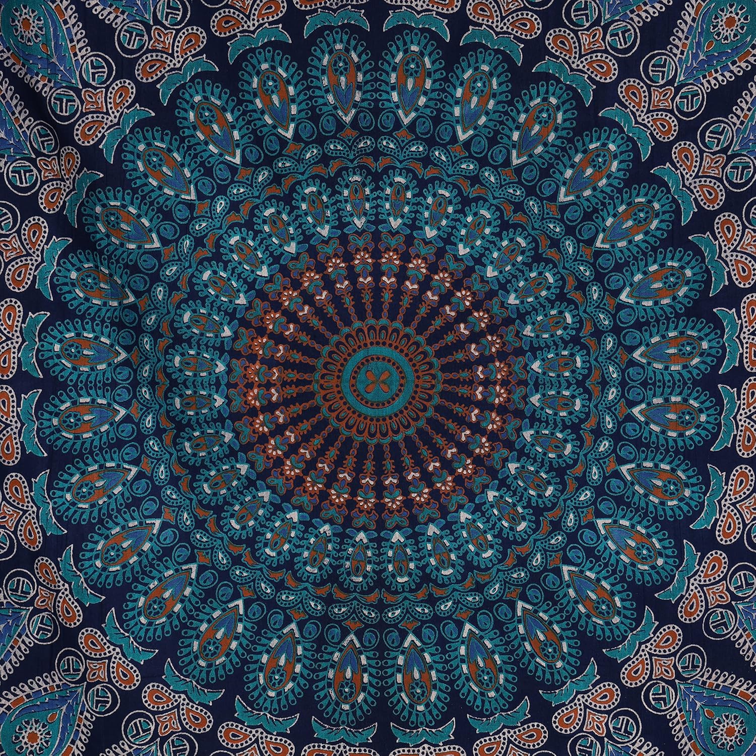 Bless International Handmade Indian hippie Bohemian Psychedelic Peacock Mandala Wall hanging College Dorm Beach Throws Table Cloth Bedding Tapestry (Blue Green, Medium(54x60Inches)(137x152cms))