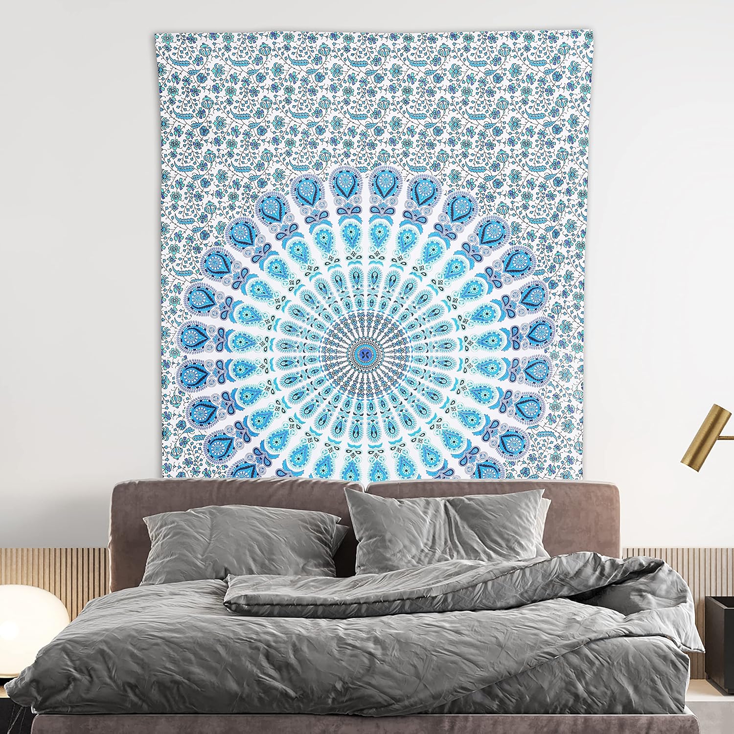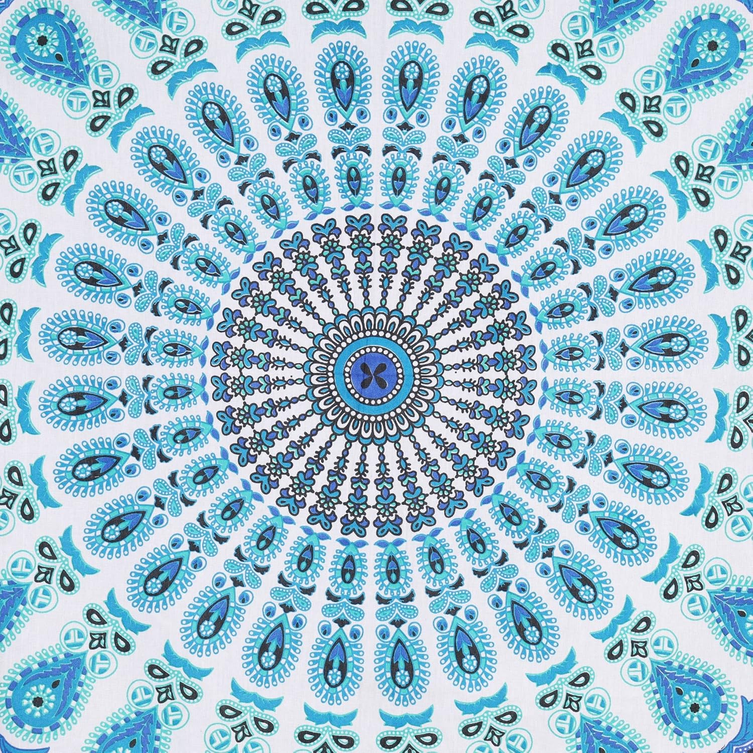 Bless International Handmade Indian hippie Bohemian Psychedelic Peacock Mandala Wall hanging College Dorm Beach Throws Table Cloth Bedding Tapestry (Peacock Sky Blue, Poster(30x40Inches)(76x101cms))