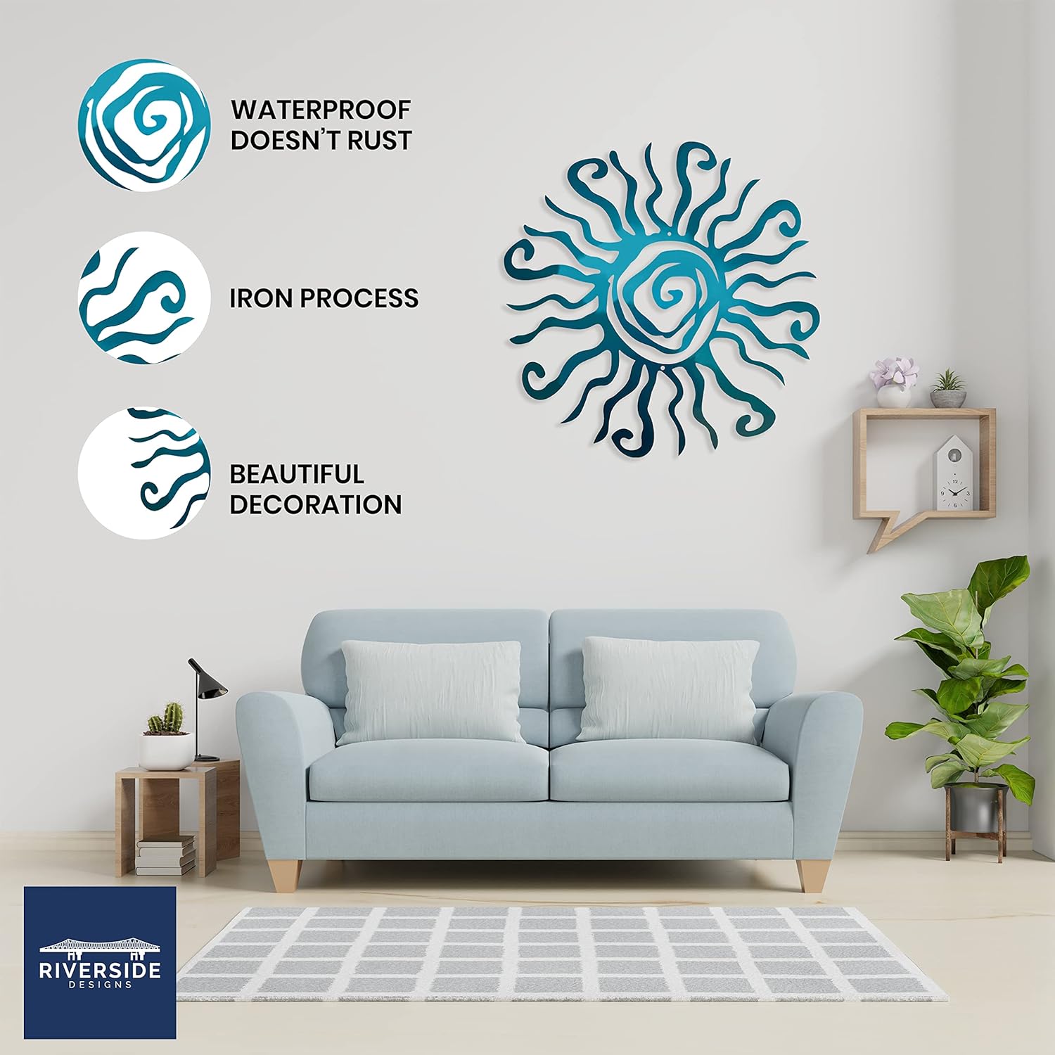 Wacky Sun Metal Wall Art Indoor/Outdoor Decor - 18" Teal Rust Proof Wall Sculpture - Made in USA - Ideal for Bedroom, Garden, Home, Patio and Farmhouse