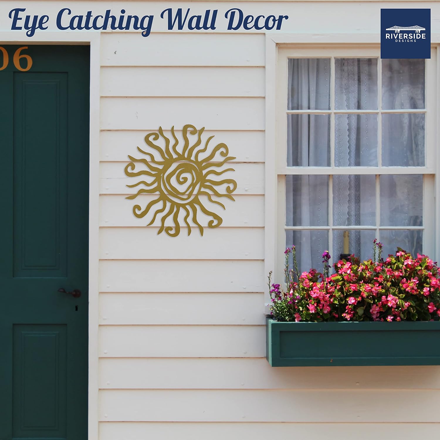 Riverside Designs Wacky Sun Metal Wall Art Indoor/Outdoor Decor - 36" Gold Rust Proof Wall Sculpture - Made in USA - Ideal for Bedroom, Garden, Home, Patio and Farmhouse