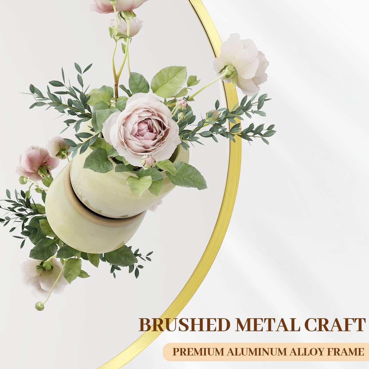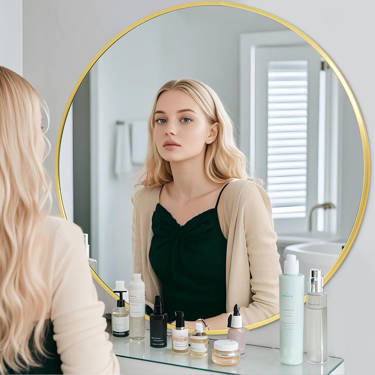 • Modern Brushed Frame Design: 24-inch gold circle mirror is crafted of an aluminum alloy metal sleek frame, making it ideal for bathroom mirror, entrance mirror, vanity mirror, living room mirror