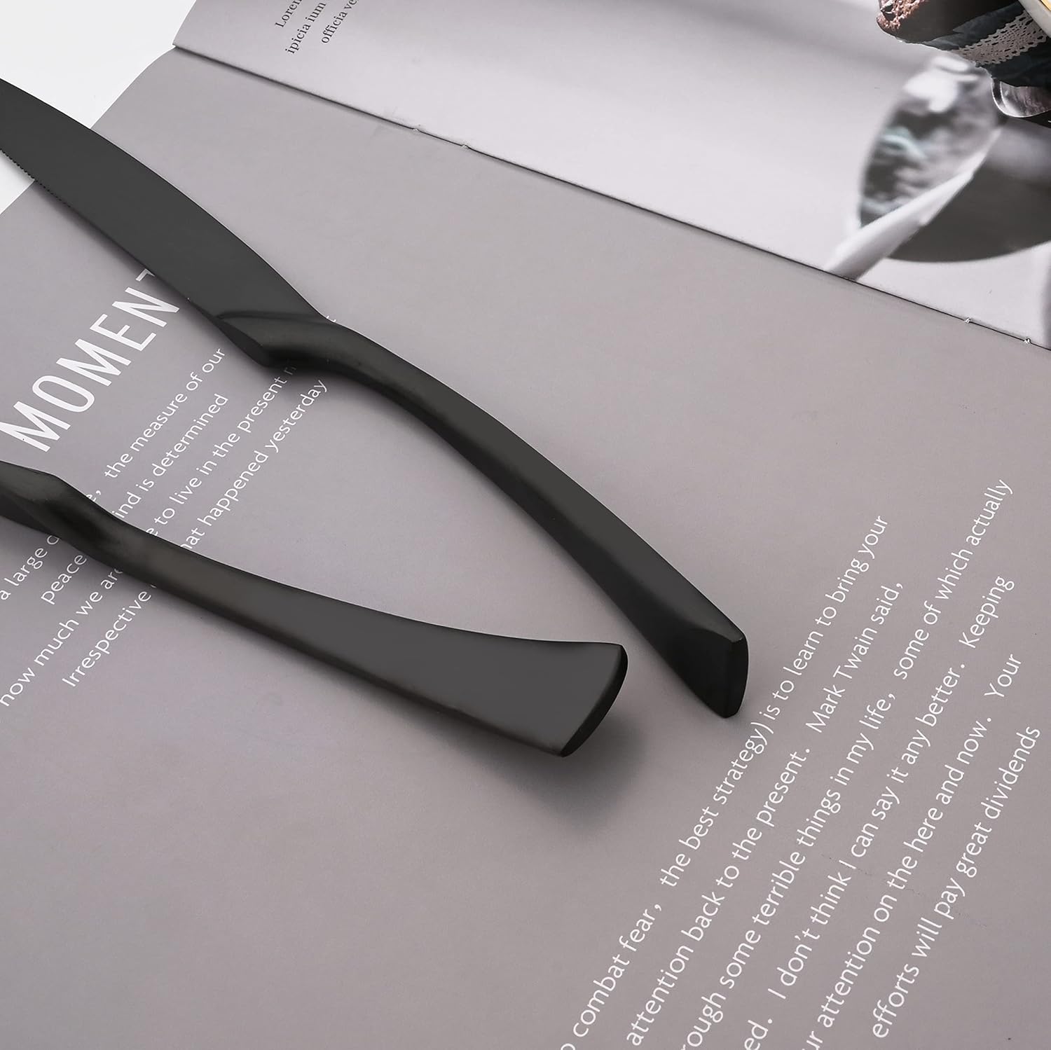 - MATTE FLATWARE SET 24 PIECES: Dinner Knife, Steak Knife, Dinner Spoon, Dinner Fork,Dessert Spoon, Salad Fork.