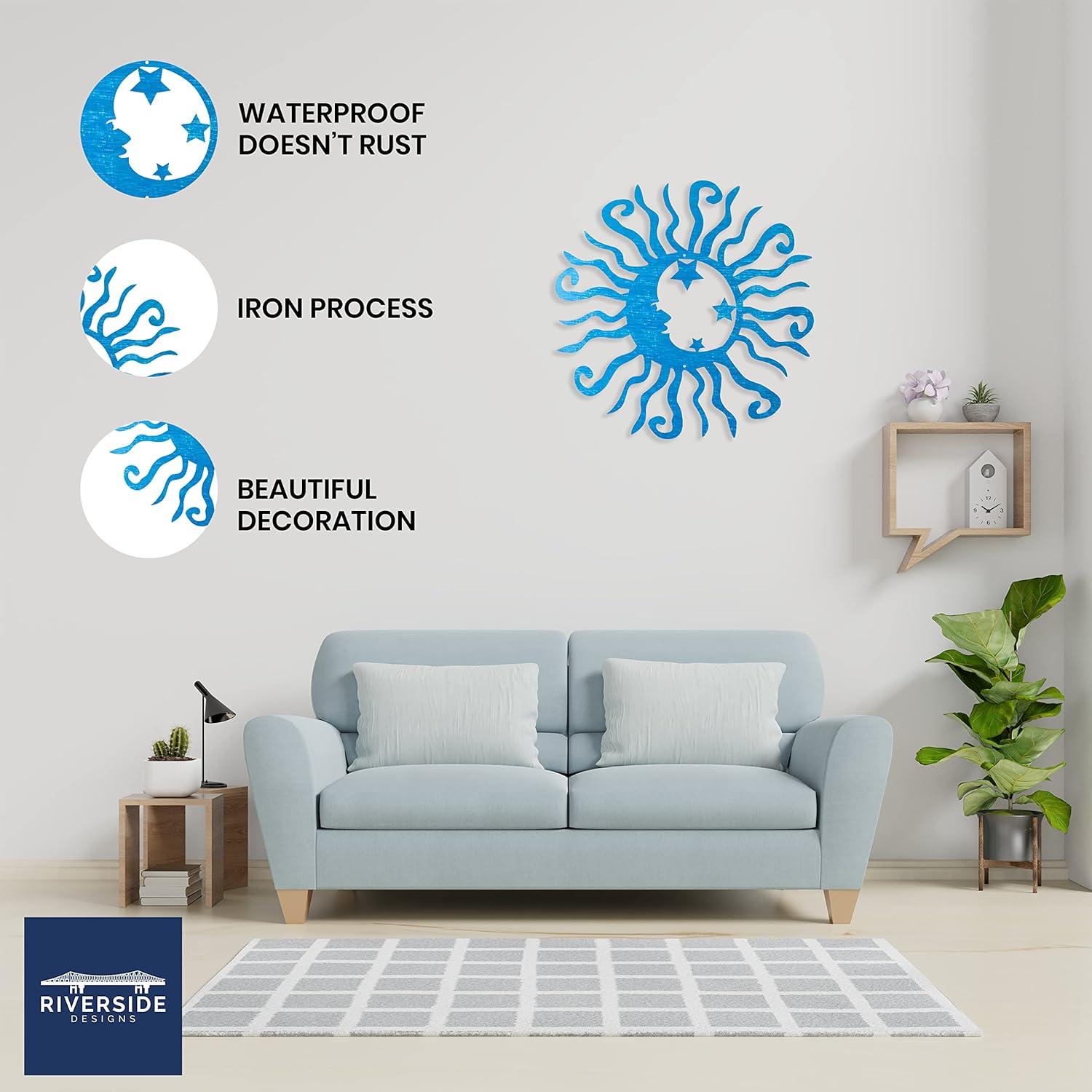 Riverside Designs Wacky Solar Moon Metal Wall Art Steel Outdoor Decor | Heavy-Duty and Waterproof | Made in USA (Teal, 24L x 24W)
