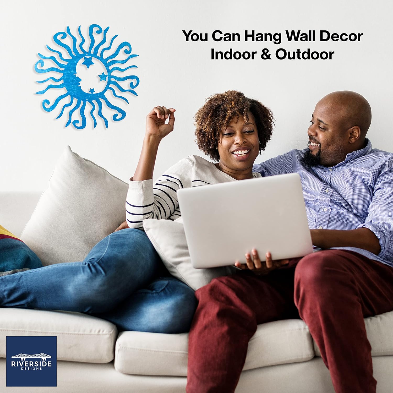 Riverside Designs Wacky Solar Moon Metal Wall Art Steel Outdoor Decor | Heavy-Duty and Waterproof | Made in USA (Teal, 18L x 18W)
