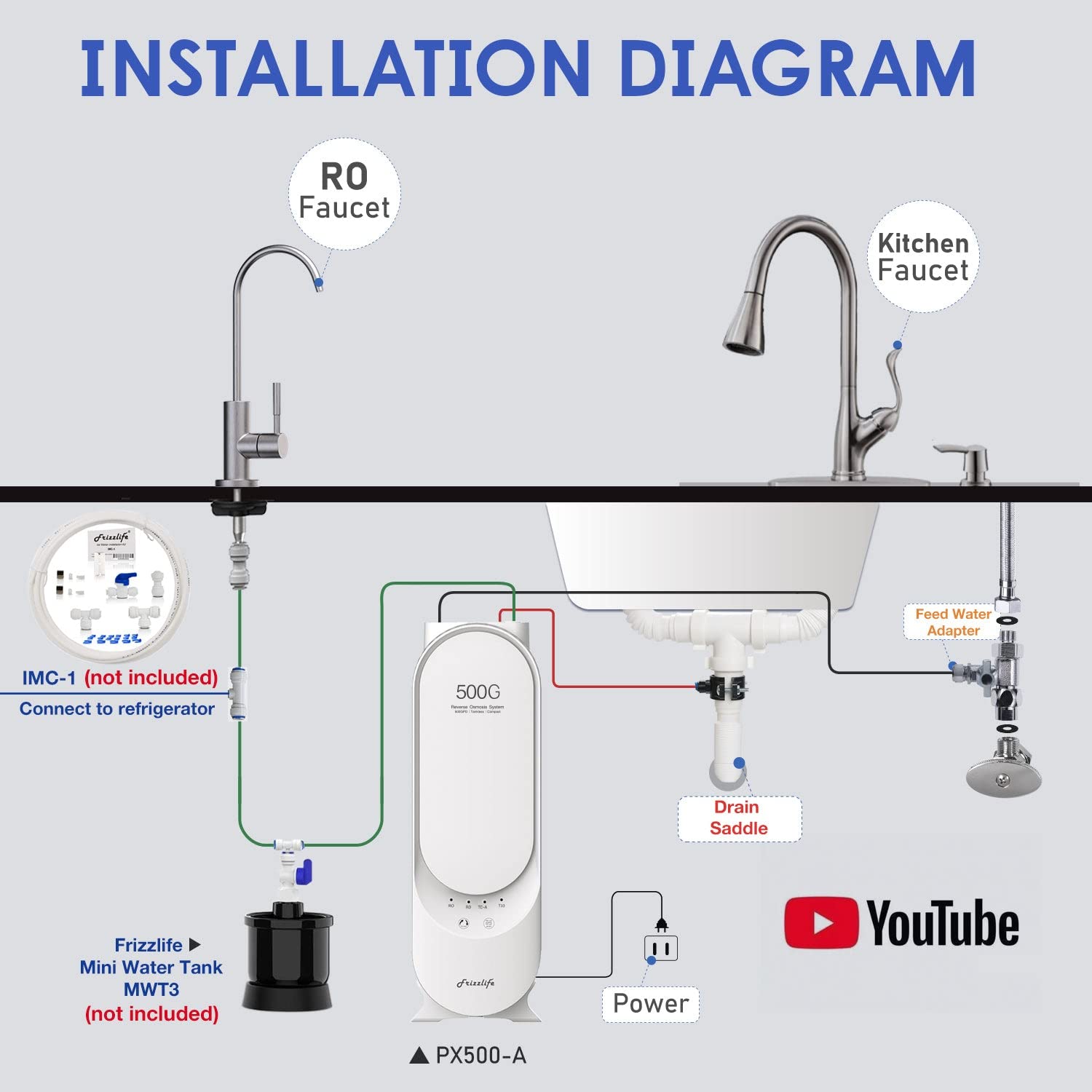 - ăEasy DIY installationăComes with filters loaded, Frizzlife RO water purification system is an integrated RO unit without a tank nor massive connection points. Fewer leakage concerns! It can be installed all by yourself in a breeze following a step-by-step installation video and comprehensive instructional user manual. Everything needed for installation is included in the package including a brush nickel faucet set! Save money from plumber hiring!