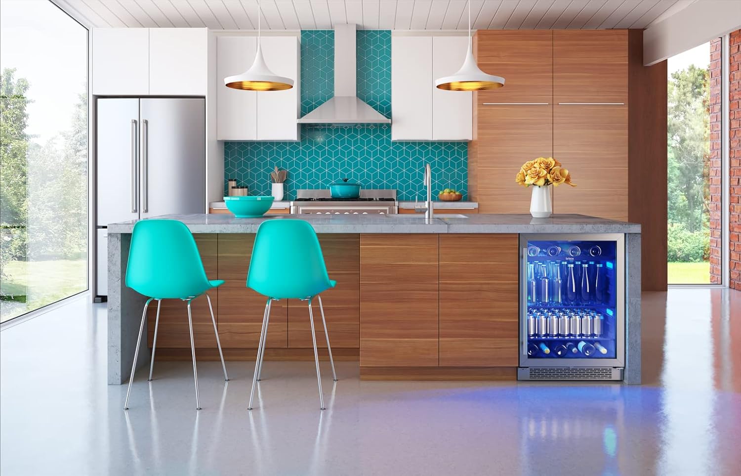 - Features also include blue LED lighting, air filtration with carbon filter.