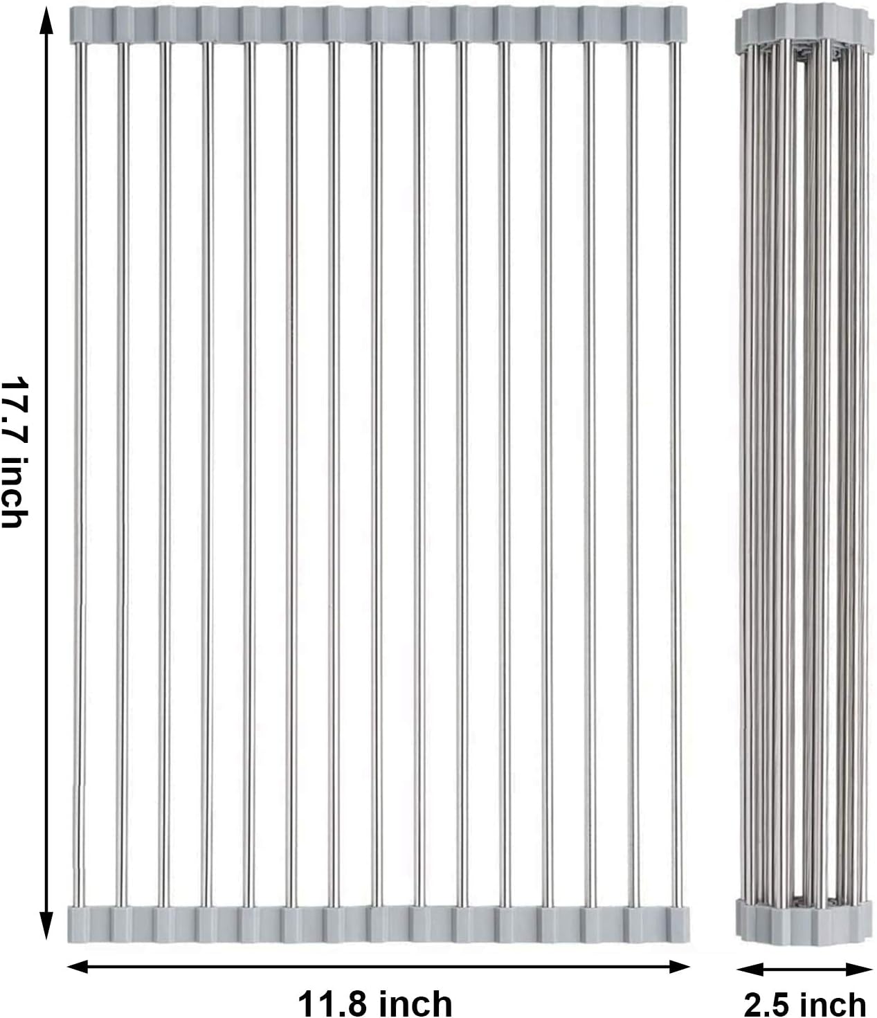- Size : 17.7 x 11.8 inches, the size of the over sink dish drying rack is suitable for most kitchen sinks and countertop. And you can also fold or cut the collapsible sink drying rack according to your sink size for better use. Please kindly measure your sink size firstly before purchasing this roll up dish drying rack over sink. A great helper for home accessories and kitchen necessities. With this small kitchen gadget, your kitchen and home will be much tidier and comfortable