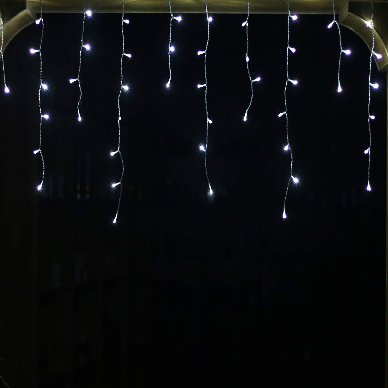 YASENN 300Led Icicle Style String Lights 29.5FT,Update Connectable 8 Lighting Modes with Timer Icicle Lights for Home Garden Outdoor Indoor Eave Decor (Cool White LED White Cable)