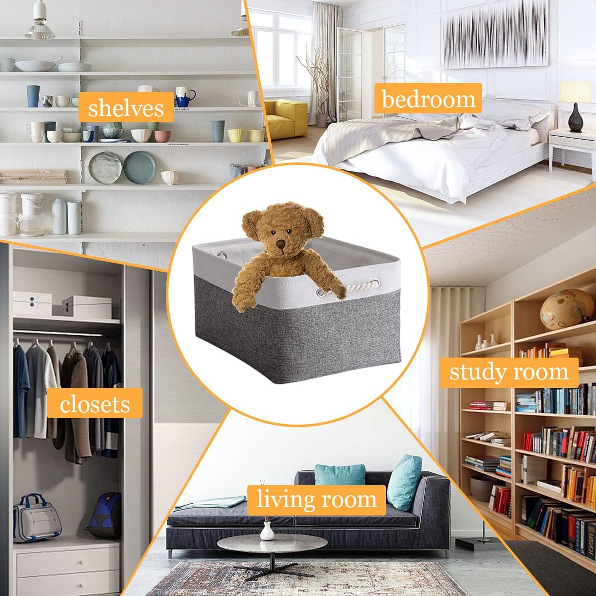 - LARGE STORAGE BIN & PROFESSIONALLY & PRACTICAL - 15.7Lร11.8Wร8.3H, can be used as storage baskets for shelves,closet storage bins, linen closet organizer,nursery basket storage,laundry baskets, bathroom towel storage,also can organizing baby Stuff,clothing, kidโs ,pet products, laundry, towel, bedsheet,sport gears,suitable use in bedroom, living room,study room,rest room,bathroom, kitchen,office,shelf,closet and cabinets. excellent choice for keeping your space nice,tidy and organized