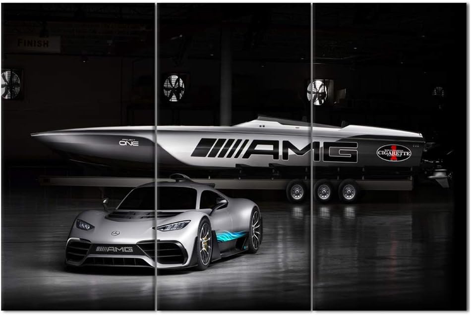 TUMOVO Sports Car Canvas Wall Art 3D Model Design On Black Background Picture Painting for Home Decoration Stretched Canvas and Ready to Hang - 28 x 14inch x 3 Panels