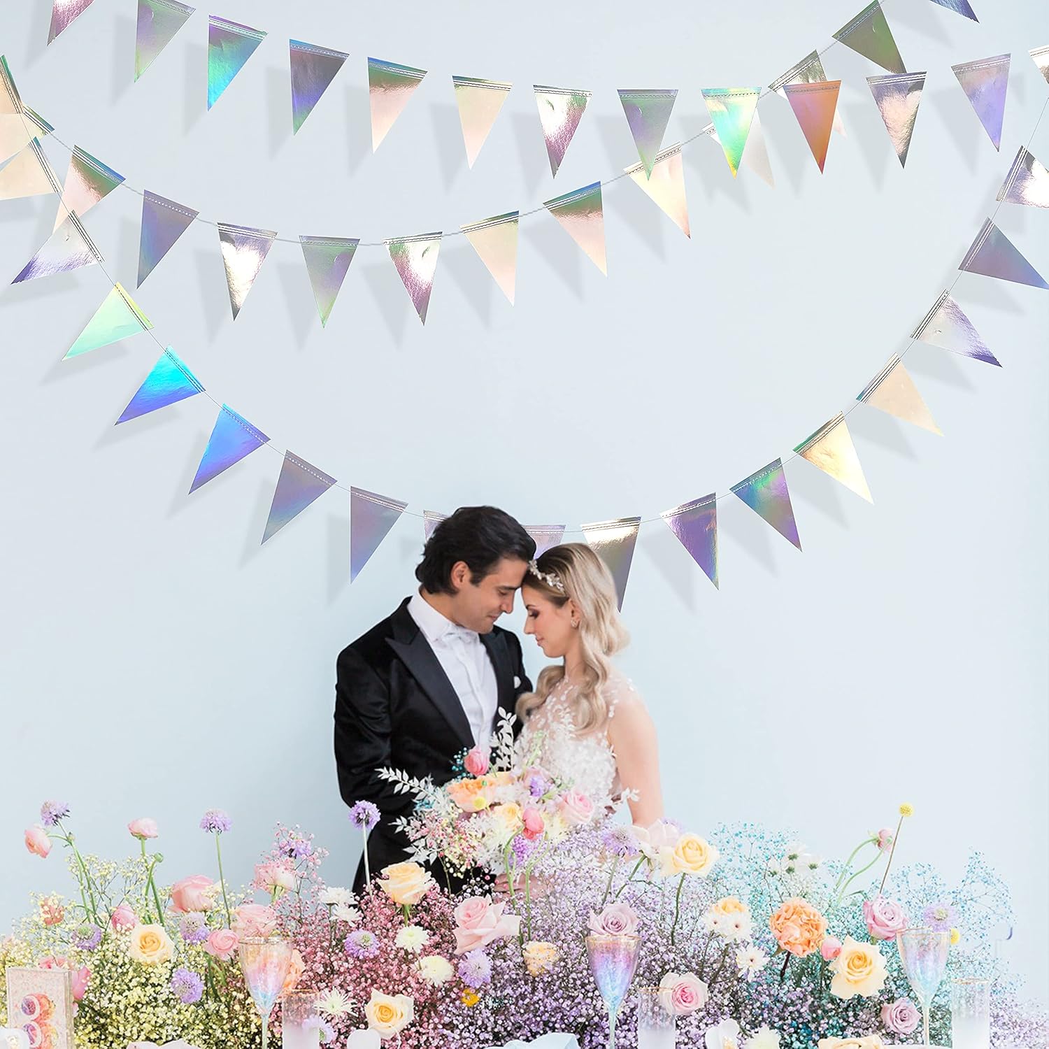 40Ft Iridescent Party Decorations Holographic Hanging Triangle Pennant Banner Flag Bunting Garland for Graduation Birthday Anniversary Engagement Wedding Bridal Baby Shower Disco Hen Party Supplies