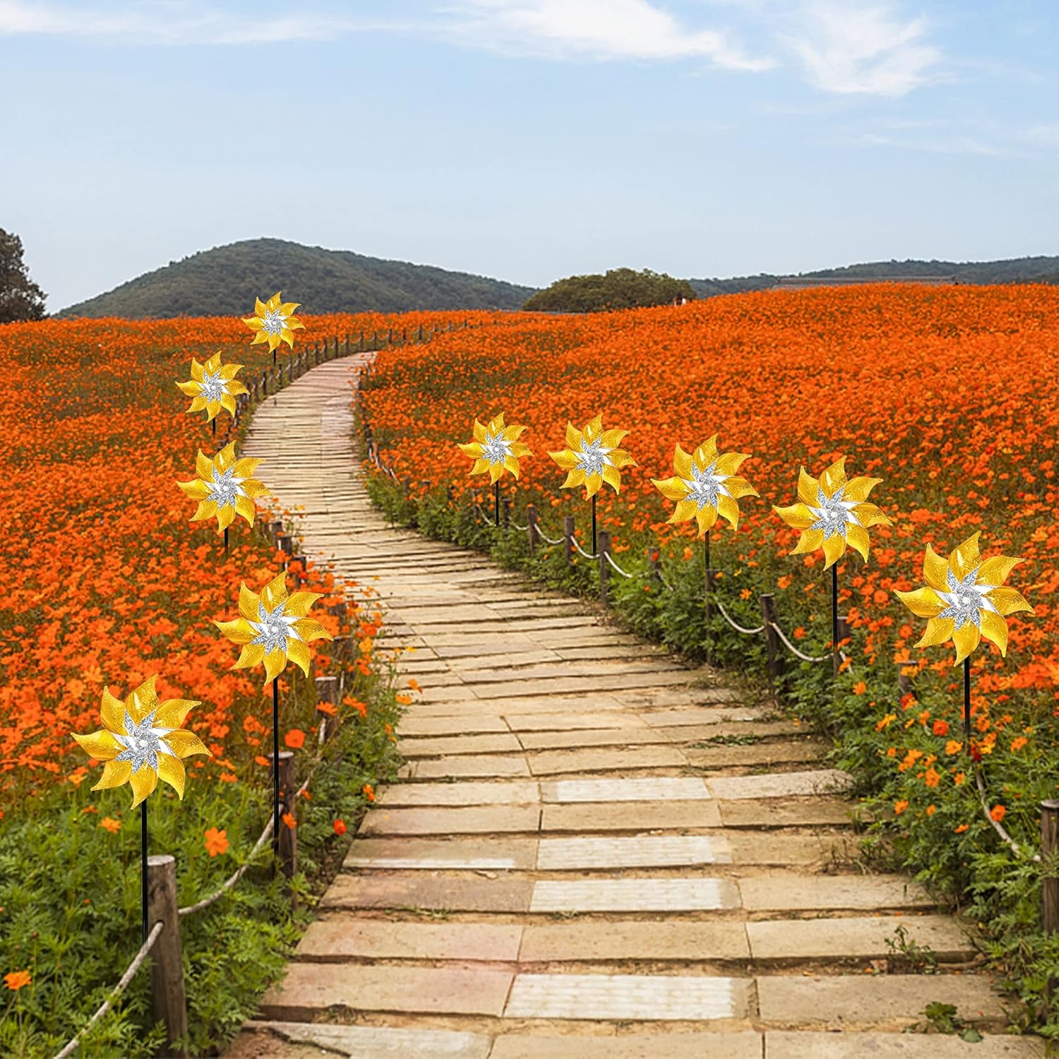 Hausse 10 Pack Reflective Pinwheels with Stakes, Extra Sparkly Pin Wheel for Garden Decor, Bird Repellent Devices Deterrent to Scare Birds Away from Yard Patio Farm, Golden