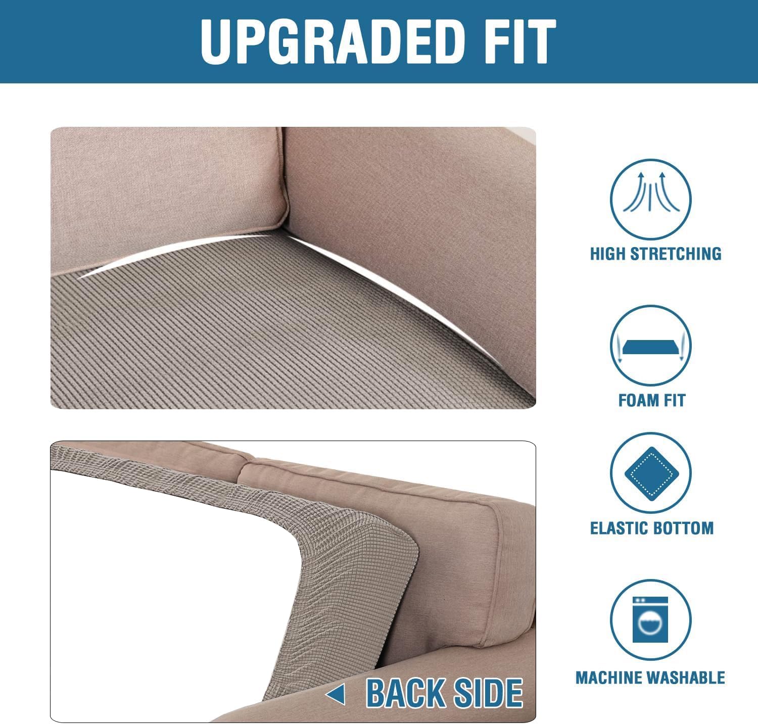 - NON SLIP: Effortless for installation (guide photos on selling page), sewn with thick elastic loops to cover the bottom edges. It is easy to install and take off, making your home more harmony, high recommended for both leather and cloth furniture