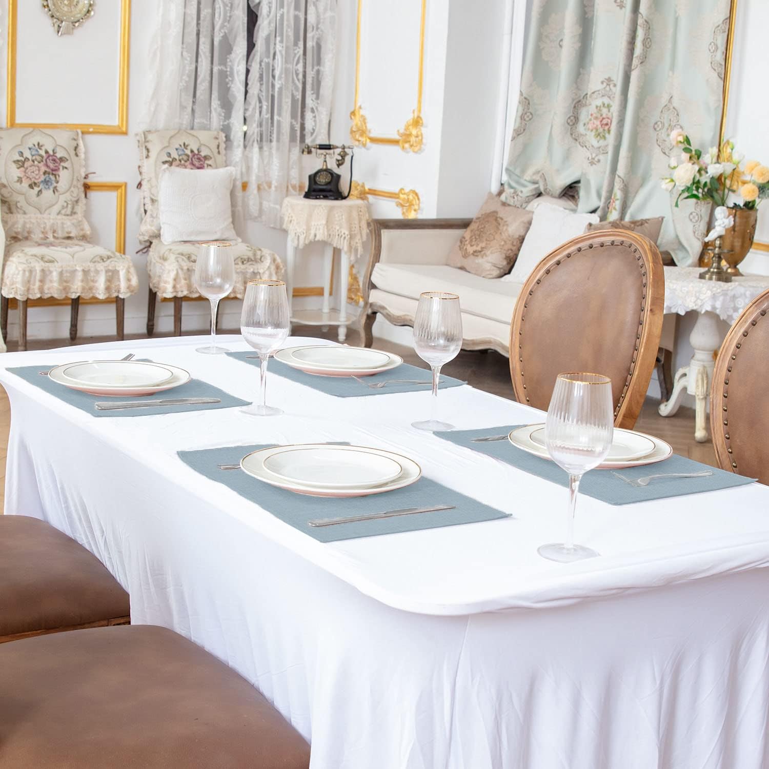 - [PACKAGE AND SIZE] One pack includes 8 pieces of cloth placemats and Each Measures 17.7"*11.8" (45cmX30cm). NO napkins included
