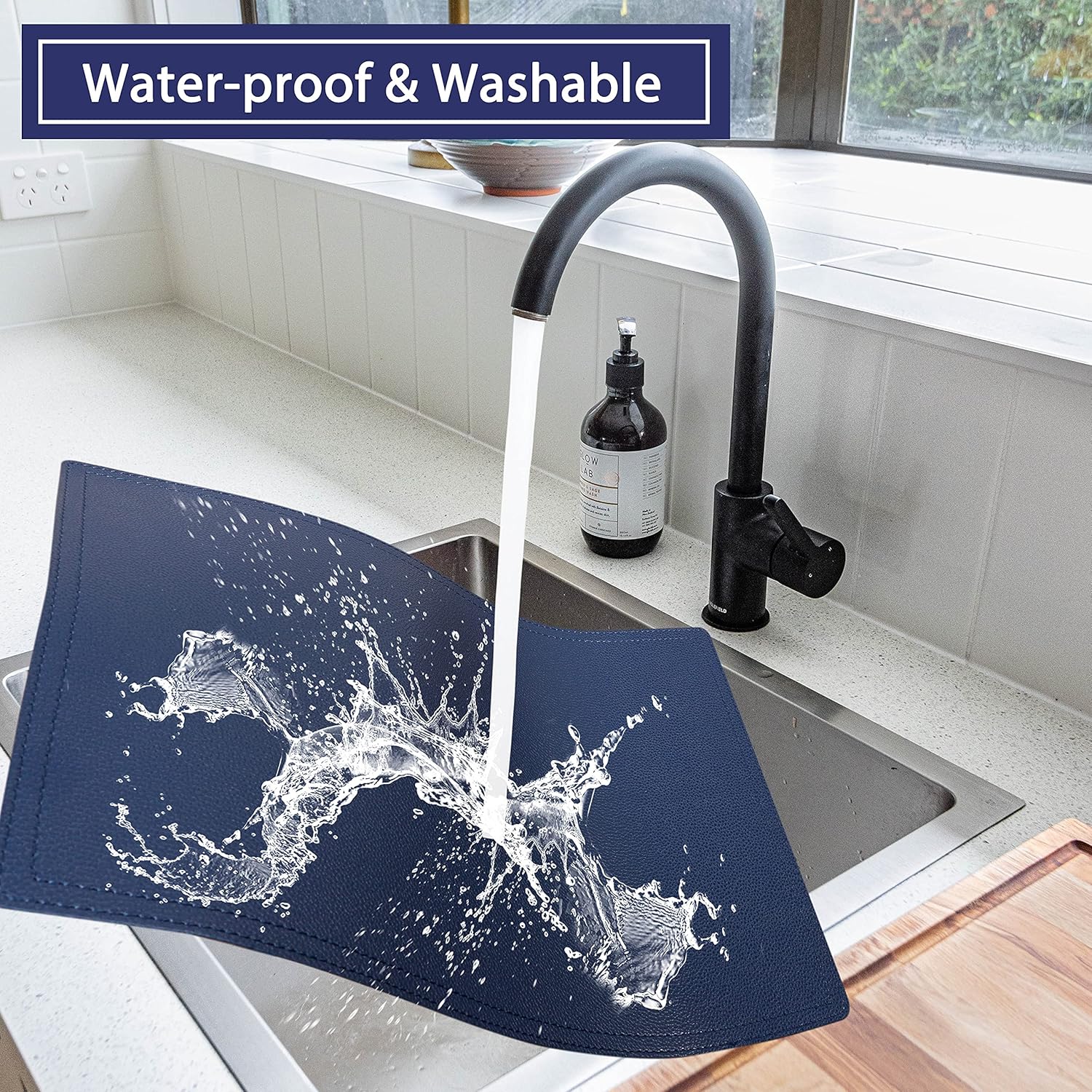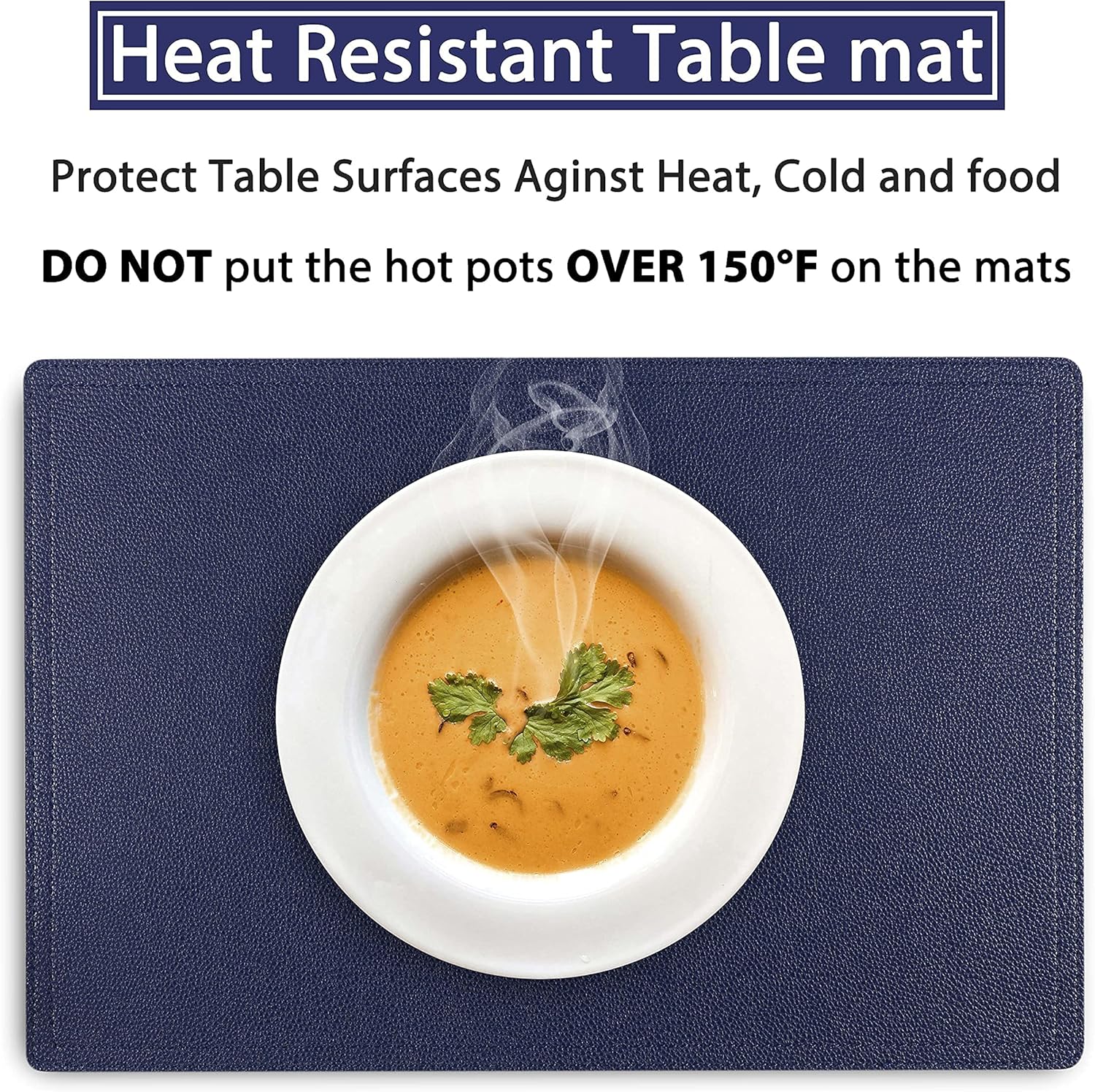 Set of 6 Faux Leather Placemats, PU Table Mats, Waterproof, Stain Resistant, Heat Resistant, Non-Slip Easy to Clean for Kitchen Dining Table,Conference Table C Blue Rectangle