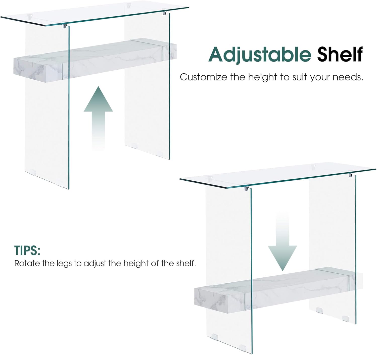 ivinta Glass Entry Table with Storage, 39.4" Modern Console Table for Living Room, Foyer, Hallway, Bedroom 5101 (White)