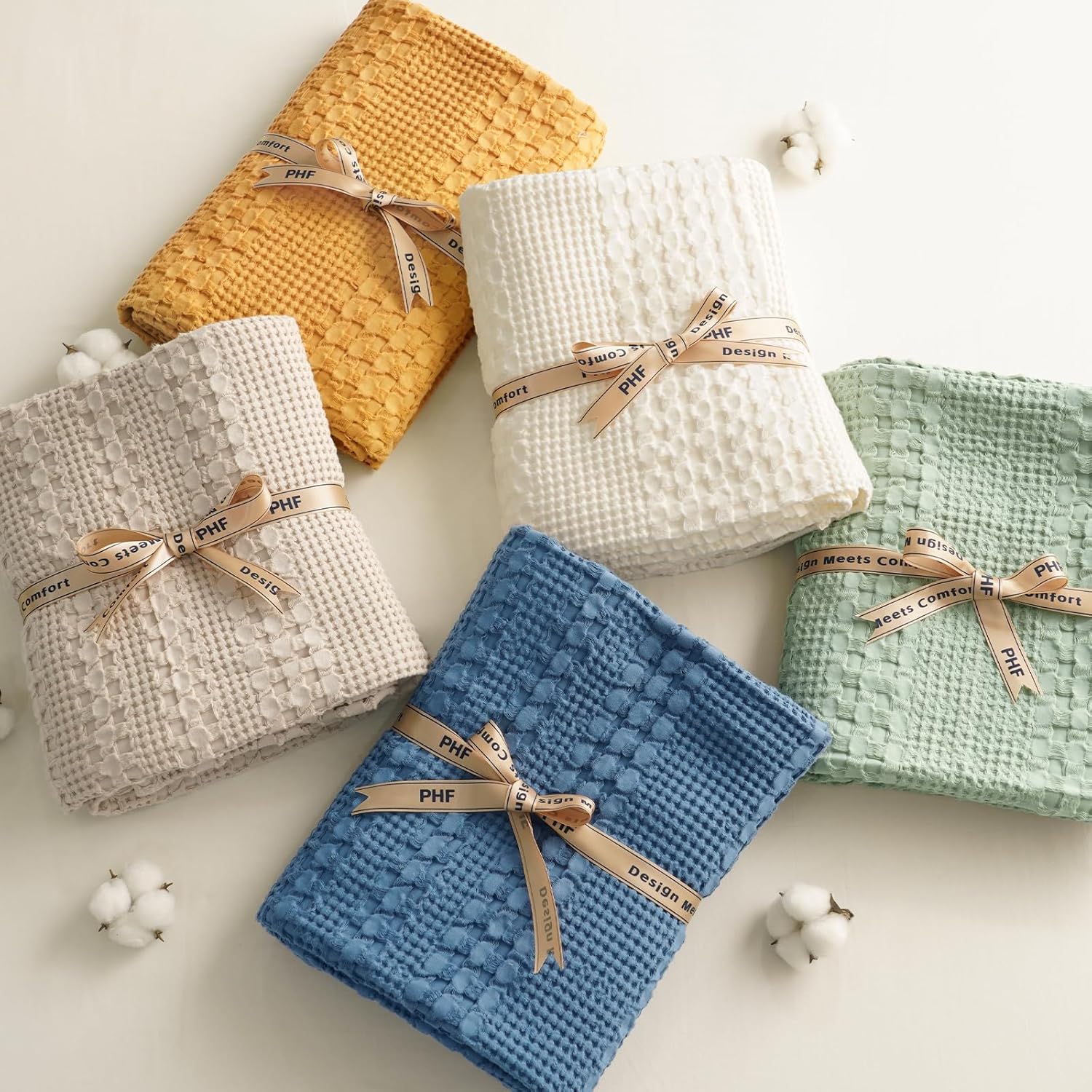 - Easy Care: PHF cotton waffle blanket is machine washable for easy care. Gentle cycle. Do not bleach. Tumble dry low. Cool iron if needed. No pilling, shrinking, or fading. labor tests show that the throw blanket keep its shape and stay brands new after multiple wash cycles.