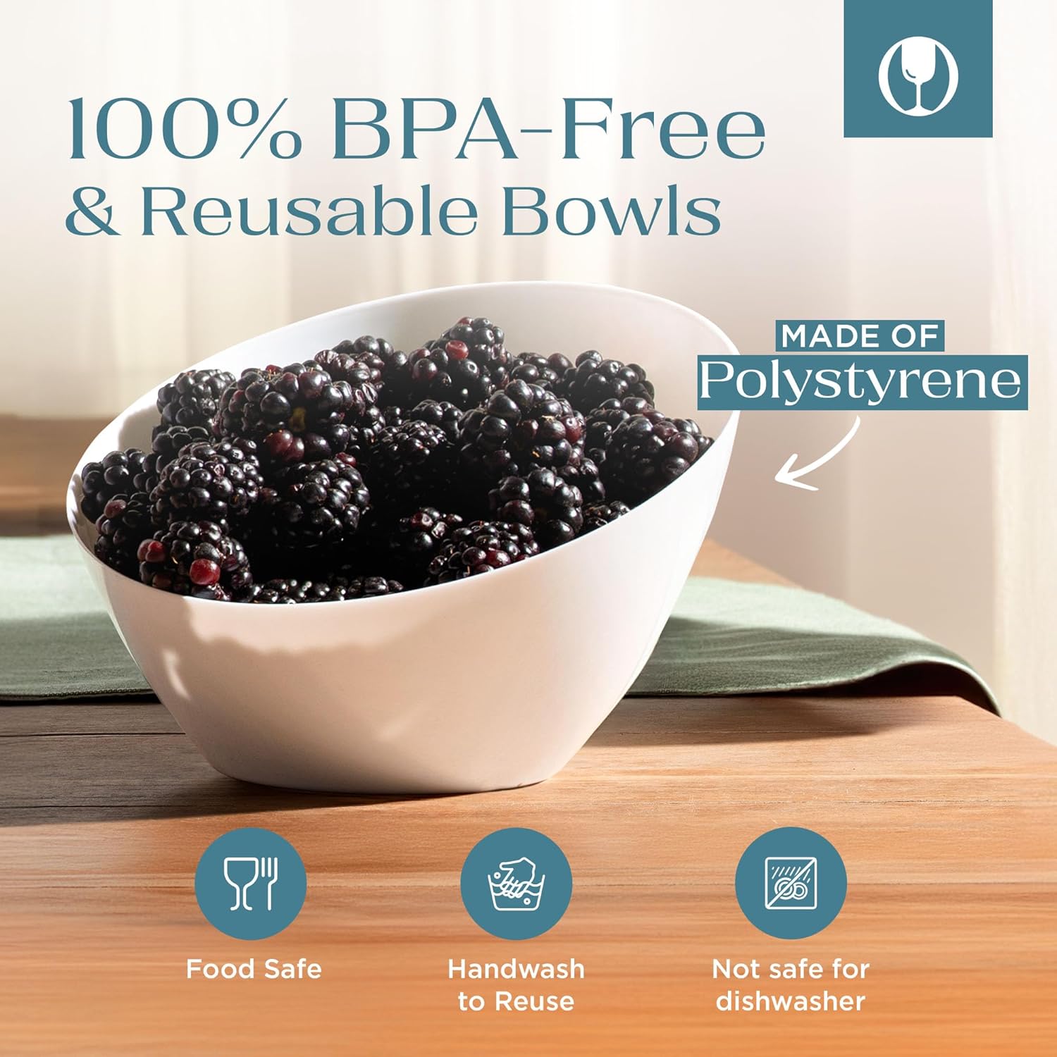Posh Setting - White Plastic Serving Bowls for Party Angled Bowls Disposable Chip Bowls Candy Bowls for Party Table Salad and Fruit Bowls for Party Wedding Serving Bowls - White, 8 OZ, 5 Pack
