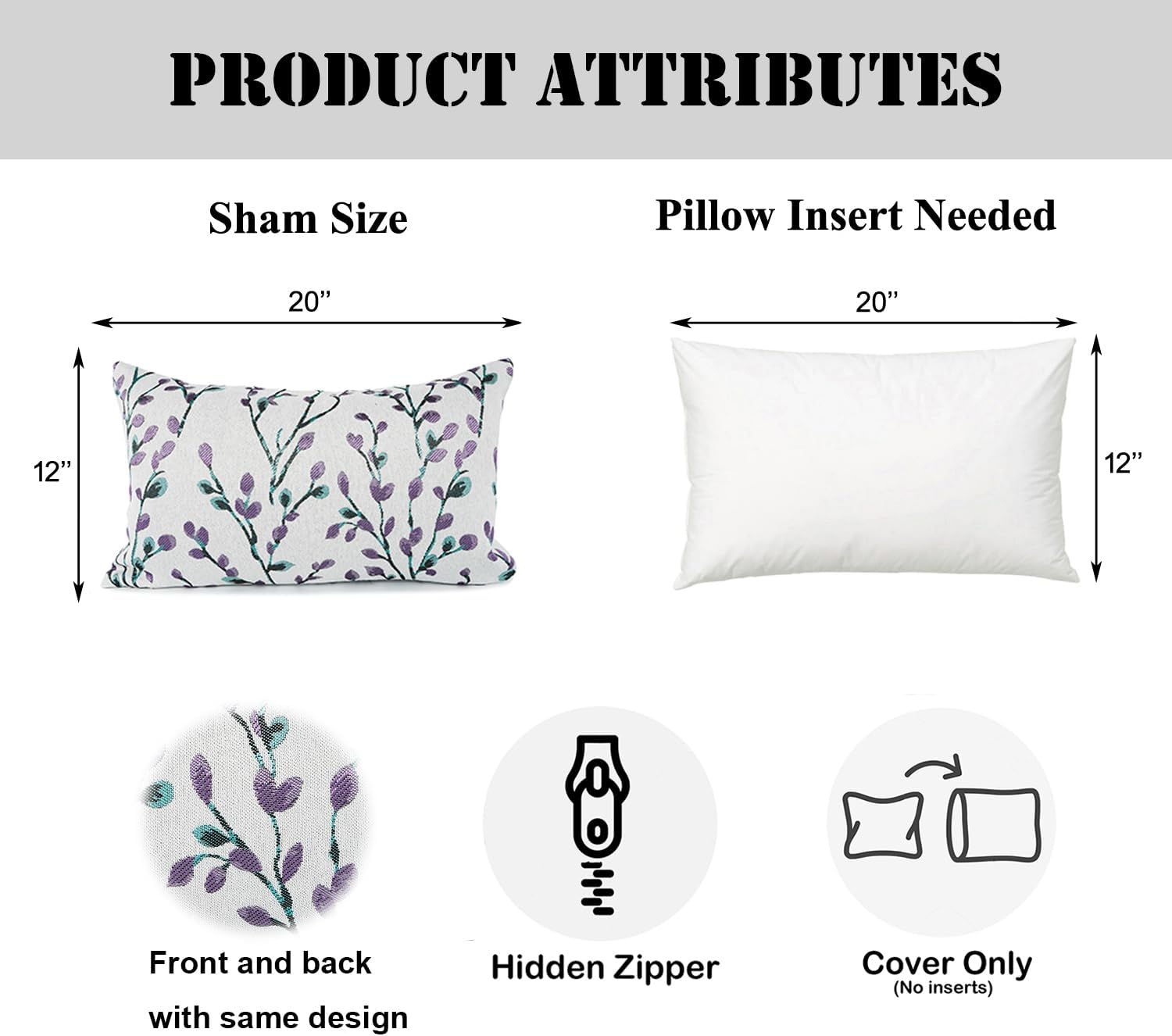 YOUR SMILE Classical Embroidery Jacquard Purple Square Decorative Throw Pillow Case Cushion Cover,12x20 inch