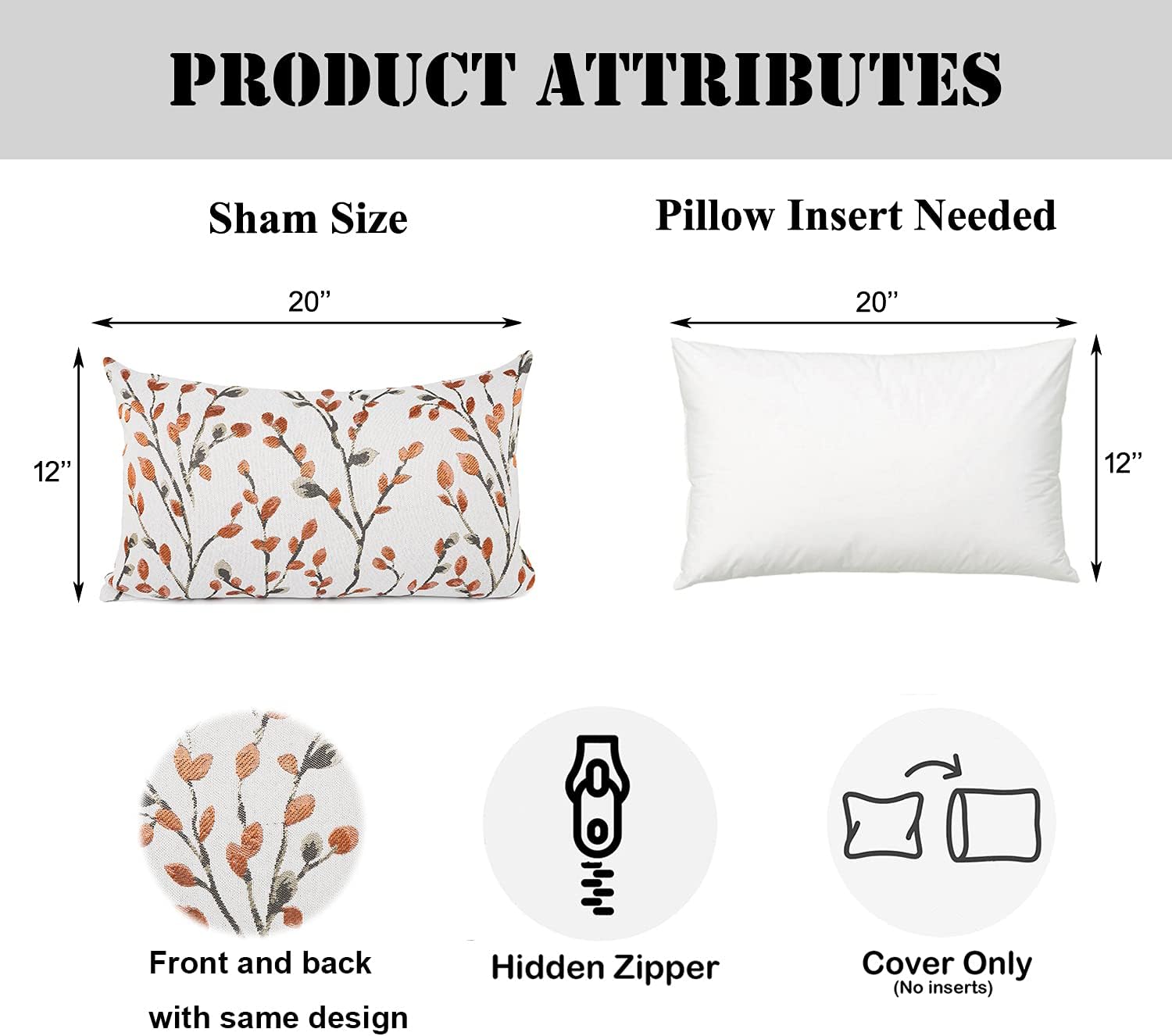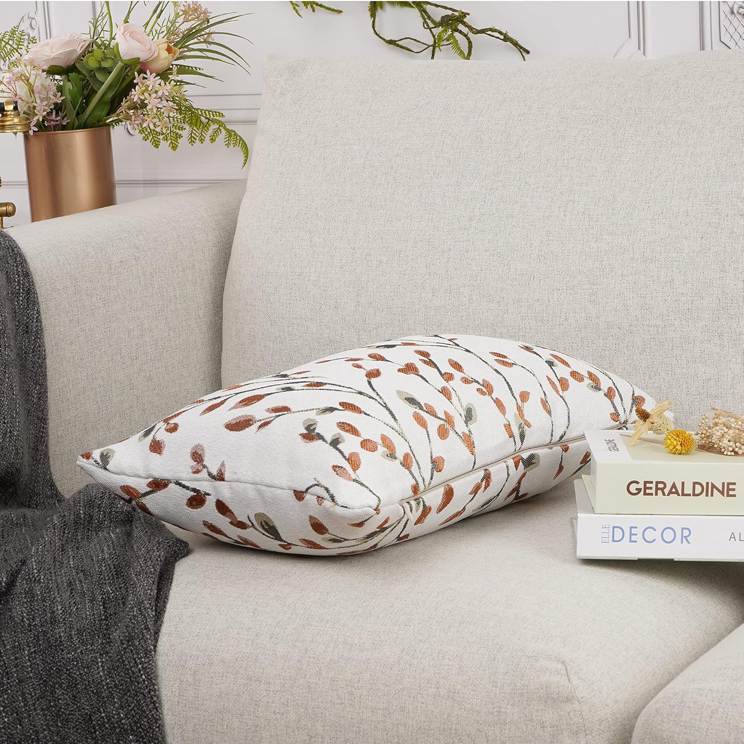 YOUR SMILE Classical Embroidery Jacquard Orange Square Decorative Throw Pillow Case Cushion Cover,12x20 inch