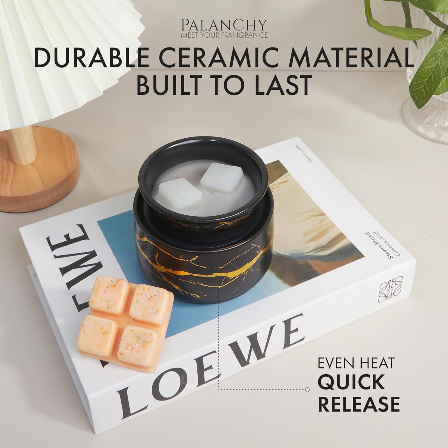 PALANCHY Wax Melt Warmer Ceramic 3-in-1 Oil Burner Electric Candle Wax Warmer Burner Melter Fragrance Warmer for Scented Waxs Home Office Bedroom Aromatherapy Gift& Décor (Black Gold)