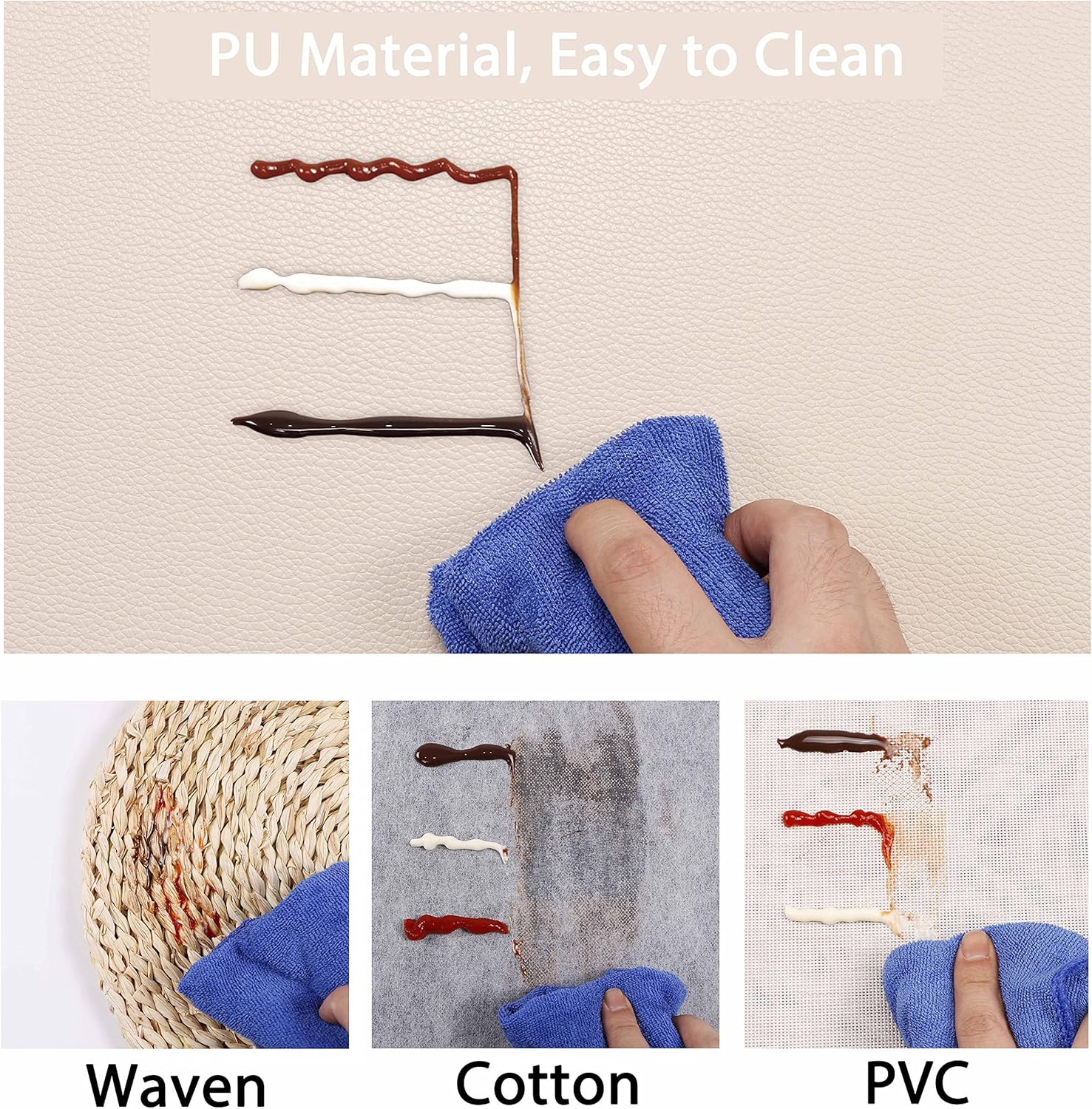 Set of 6 Faux Leather Placemats, PU Table Mats, Waterproof, Stain Resistant, Heat Resistant, Non-Slip Easy to Clean for Kitchen Dining Table,Conference Table, Beige