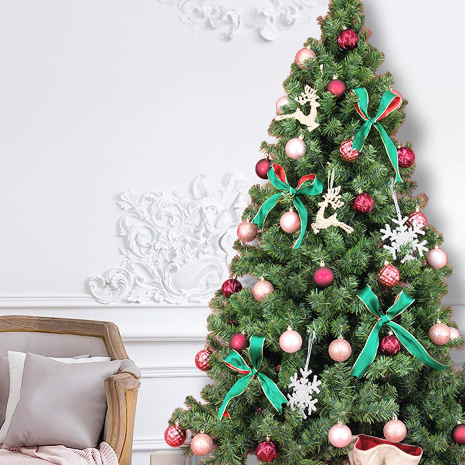 Every Day is Christmas Ornaments, Shatterproof Christmas Tree Ornament Set, Christmas Balls Decoration 50 Count (2.24"/57mm, Pink Rose)