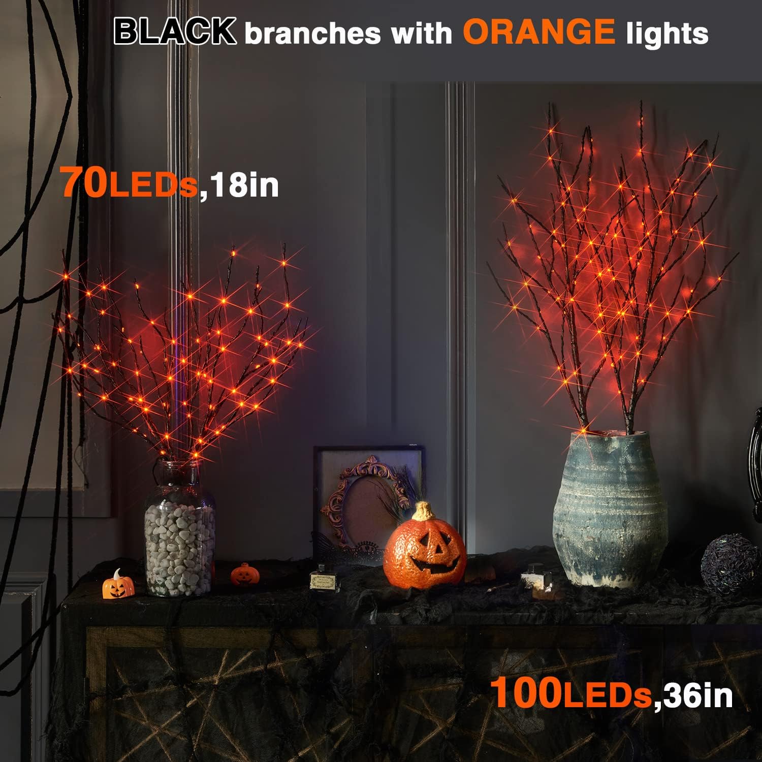- π HALLOWEEN DECOR: 2024 NEW designed LED black Halloween branches,glow with 100L orange fairy lights, is a great decoration for Halloween party.