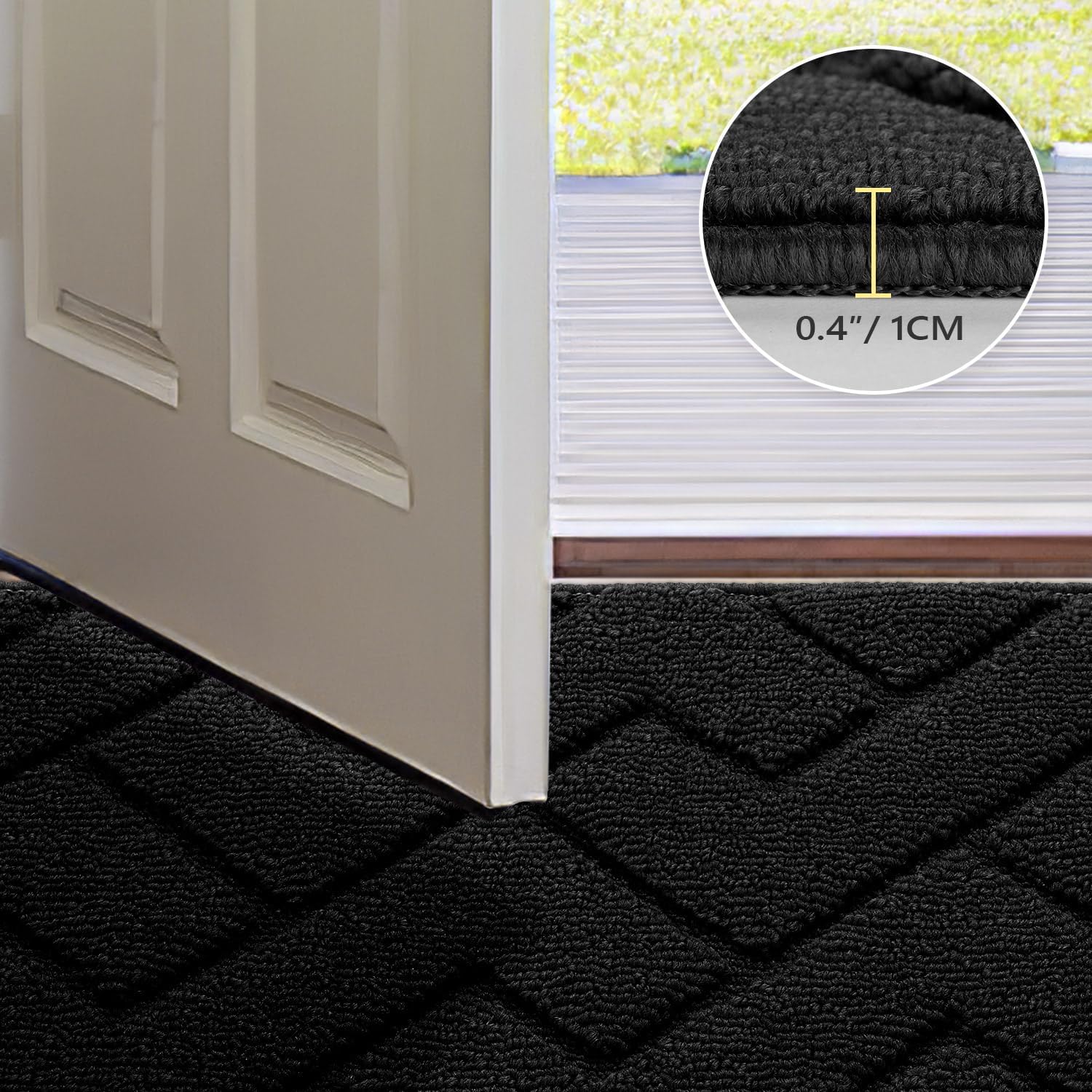 hicorfe Indoor Doormat,Front Back Door Mat Rubber Backing Non Slip Door Mats 24"x35" Absorbent Resist Dirt Entrance Doormat Inside Floor Mats for Entryway Washable Low-Profile(Black)