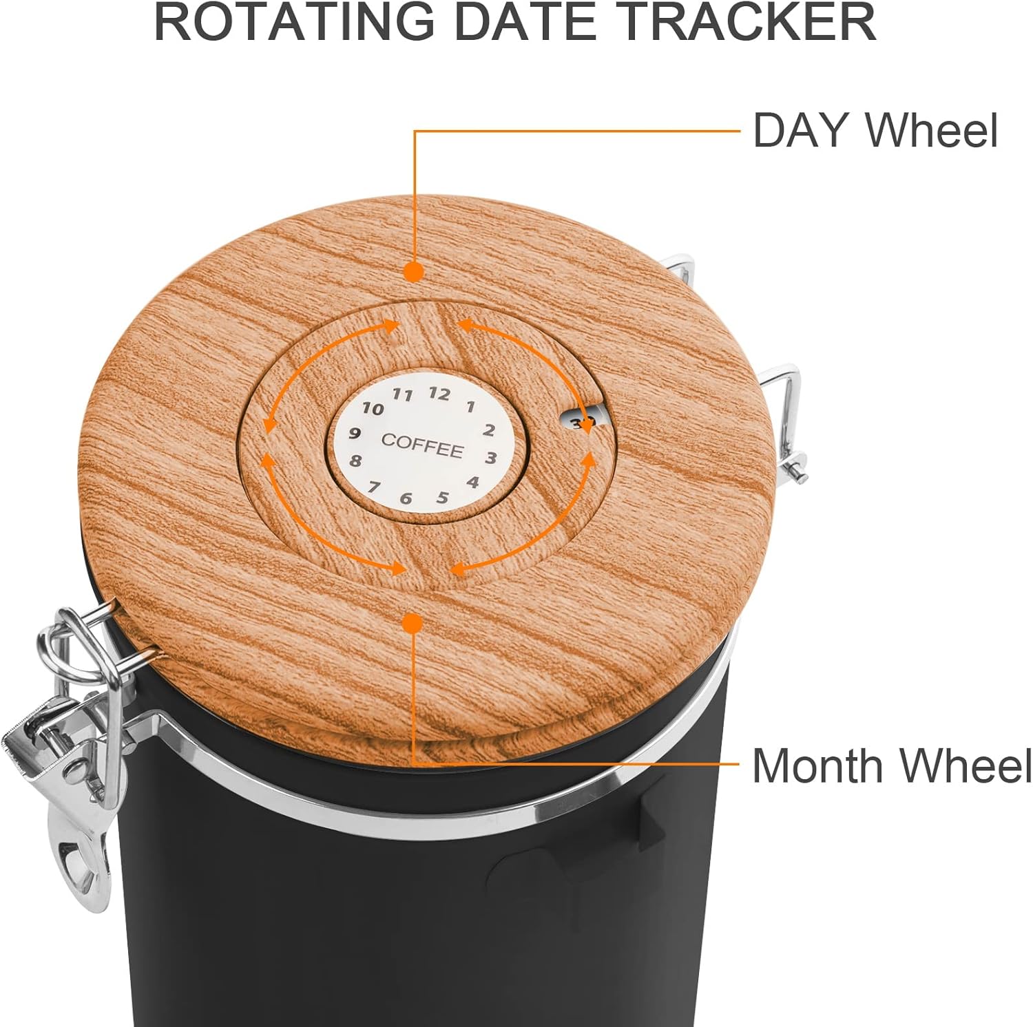 TEDSWAIT Coffee Canisters Airtight Coffee Bean Storage Container Kitchen Stainless Steel Food Storage Container with Scoop Date Tracker & CO2 Valve 61Fl Oz (Black)