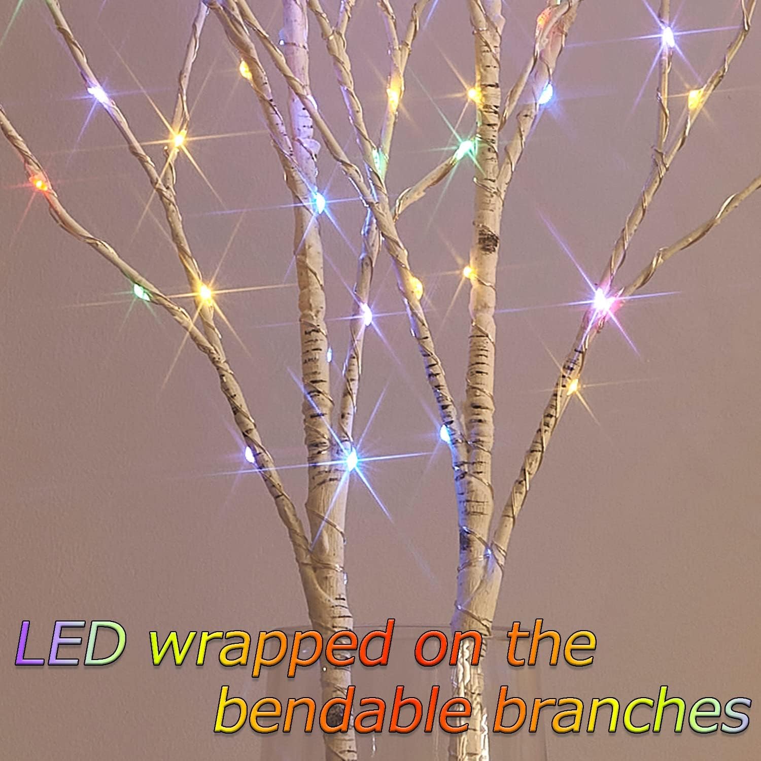 Birchlitland Lighted Birch Branches Battery Operated 18IN 70 LED 8 Function, White or Multiple Colors, Artificial Decorative Branch Lights for Home and Holiday Decoration Indoor Outdoor