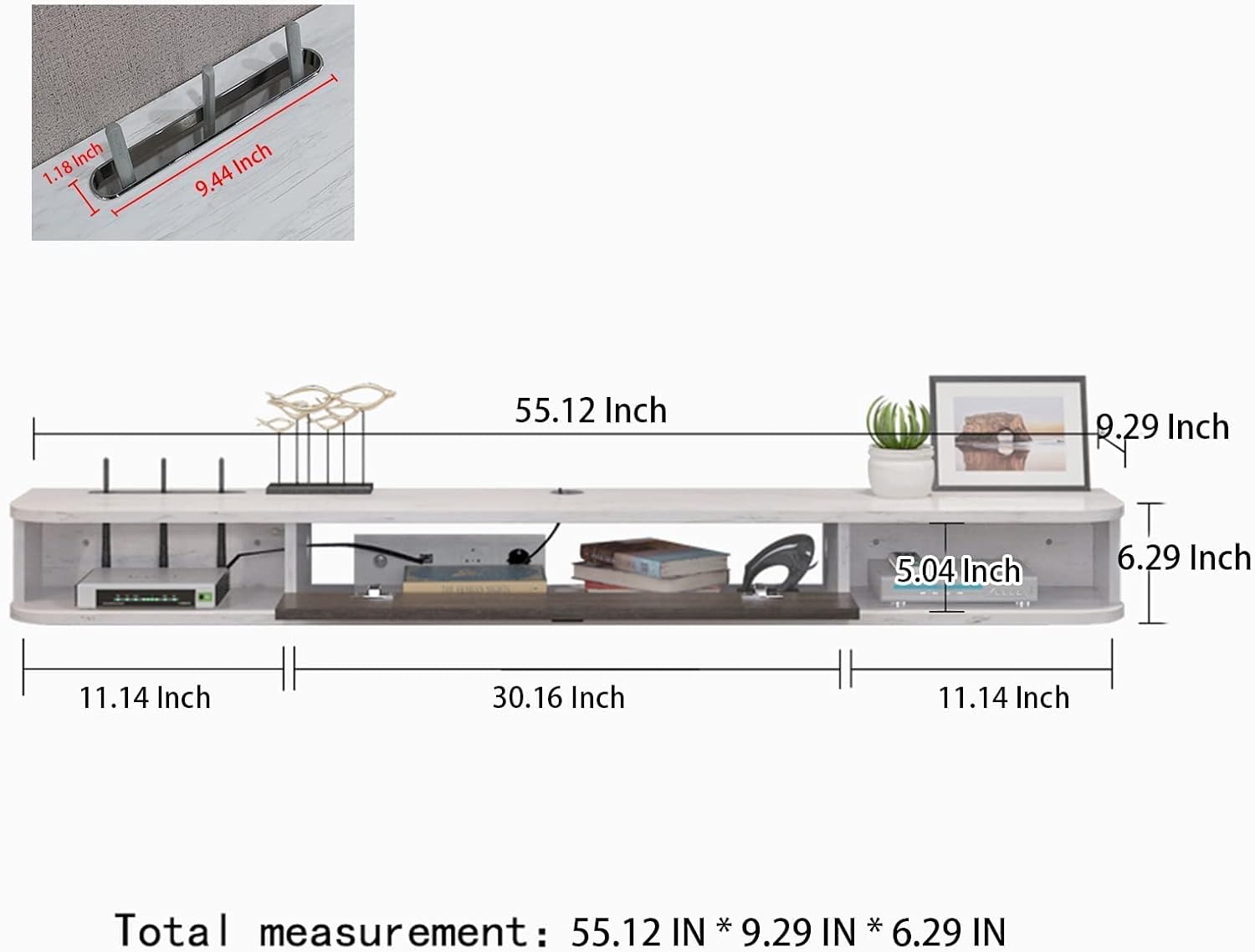 - 【Modern & Sleek Design】You can create a comfortable artistic atmosphere in the hollow indoor environment. Making general design changes can improve the quality of life. The floating TV shelf is simple in design and can easily complement any room or furniture style. Add some vitality and vigor to your bedroom, living room, media room and office, and provide sufficient storage space to make your articles clean and close at hand!