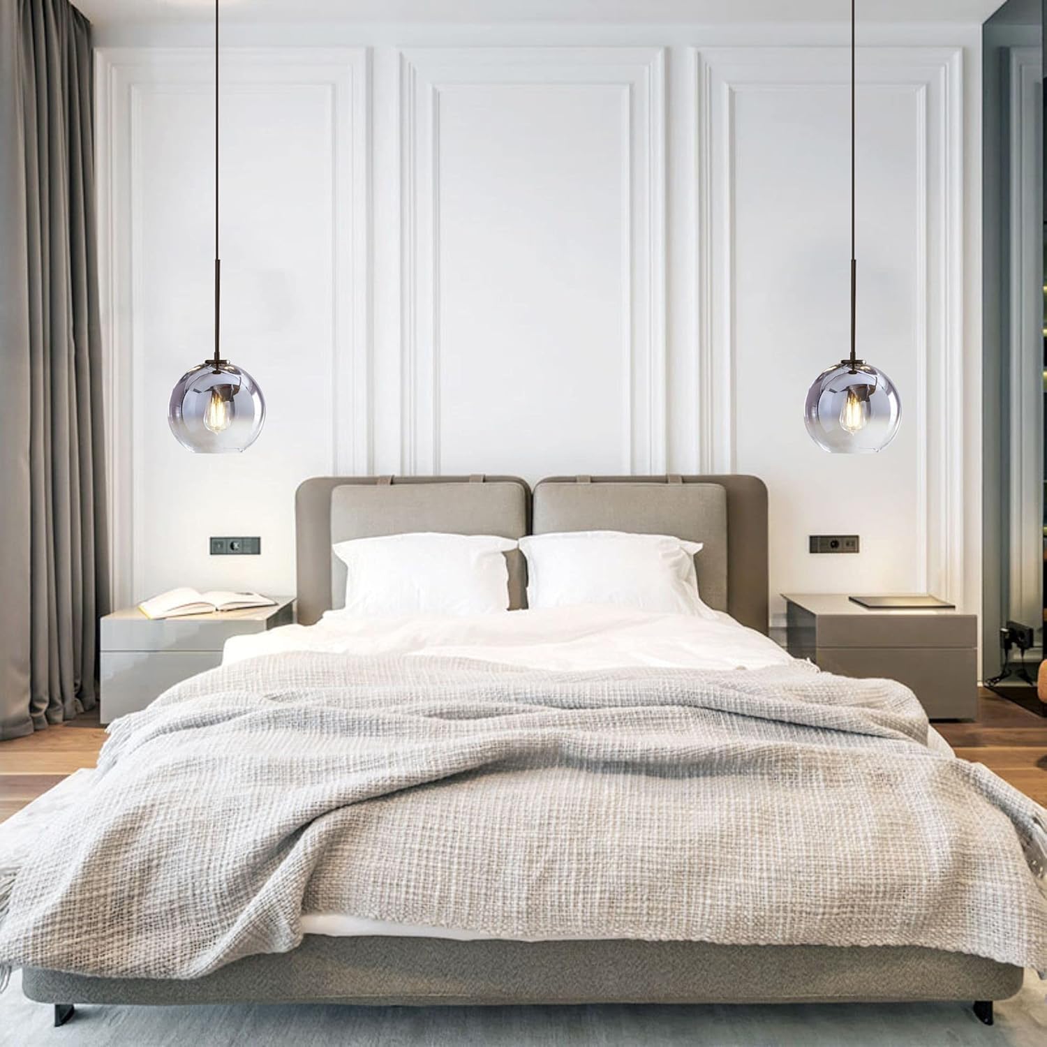 - Adjustable Pendant Light: The modern glass ball kitchen island lighting comes with a long hanging cord, you can hang higher or lower as you want. The kitchen pendant lighting compatible with different types of ceilings, even sloped ceilings, vaulted ceilings, and flat ceilings