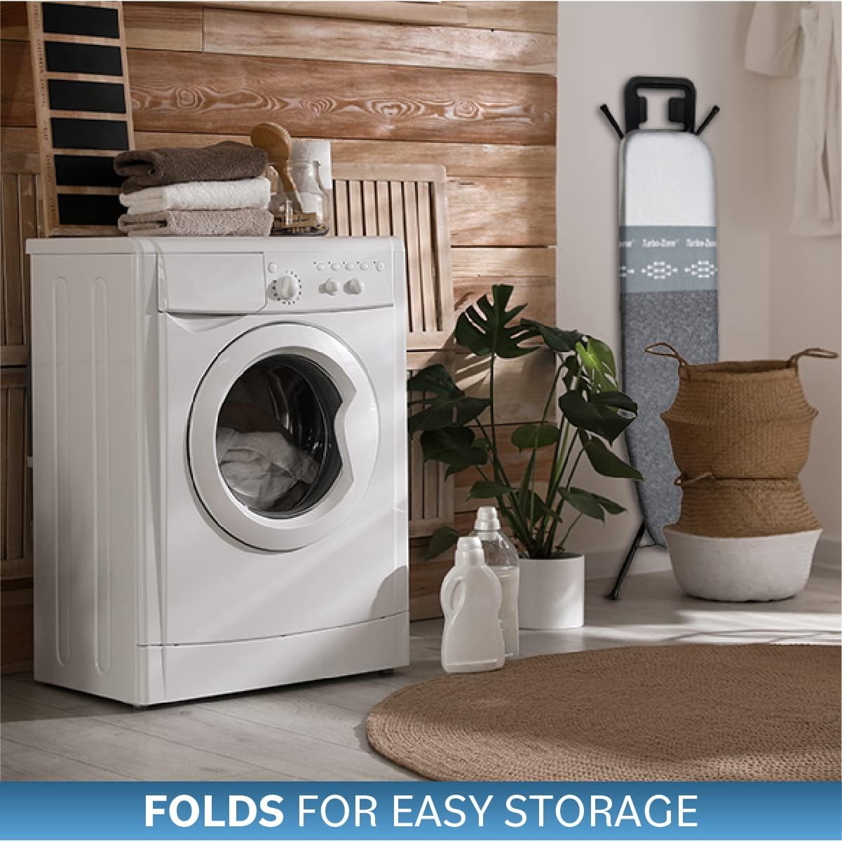 - PATENTED IRONING BOARD TECHNOLOGY- Our Iron Boards are equipped with 2 unique features: Parking Zone and Turbo Zone. The Parking Zone is a special area on the board that allows you to sit your hot iron flat without burning the surface. The Turbo Zone allows you to reset the iron’s smoothness when its plate gets a bit harder to slide on the fabric.