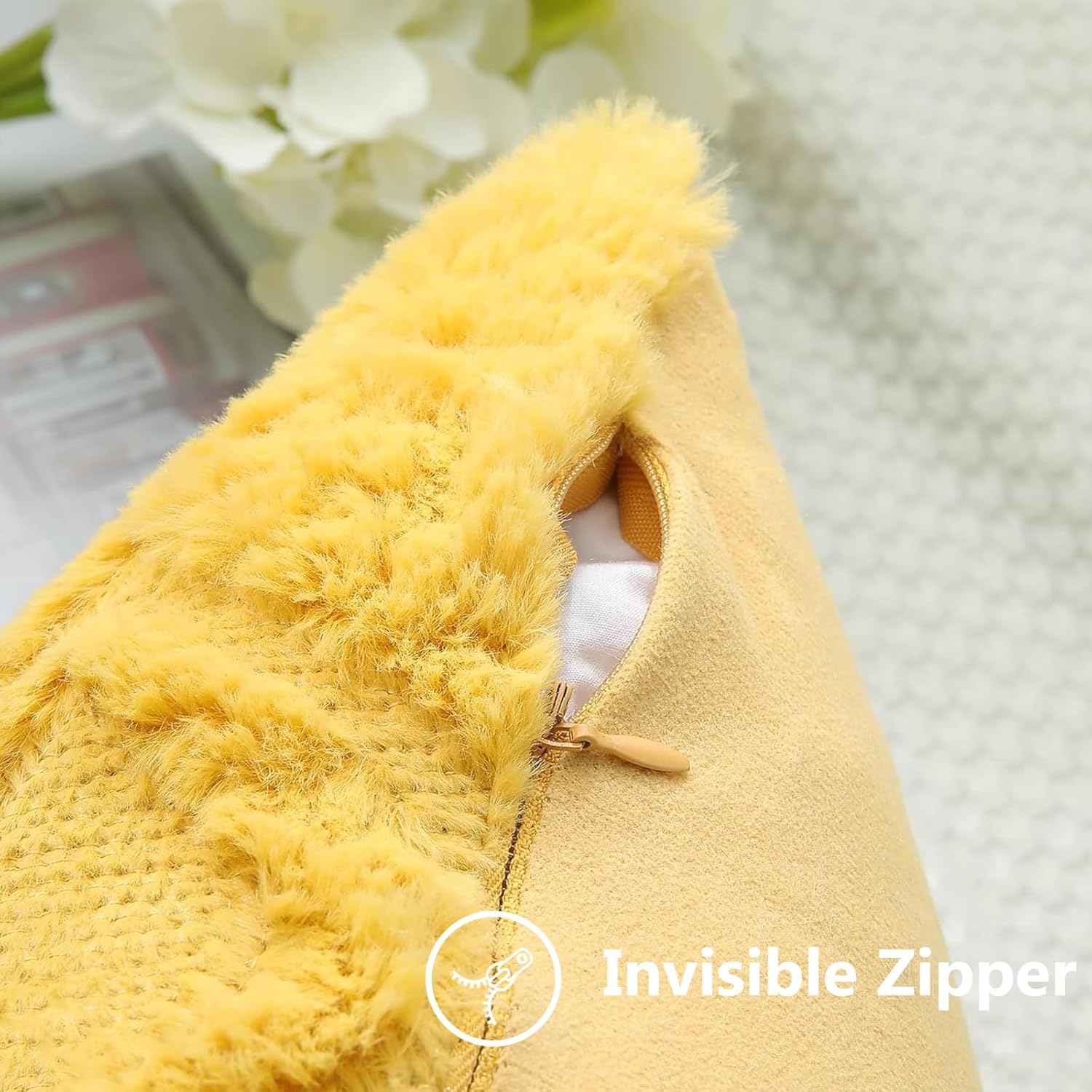 decorUhome Throw Pillow Covers 20x20 Inch Set of 2, Soft Plush Decorative Faux Fur Mustard Yellow Solid Couch Pillow Covers, Accent Farmhouse Neutral Square Euro Pillow Cases for Sofa Bed Living Room