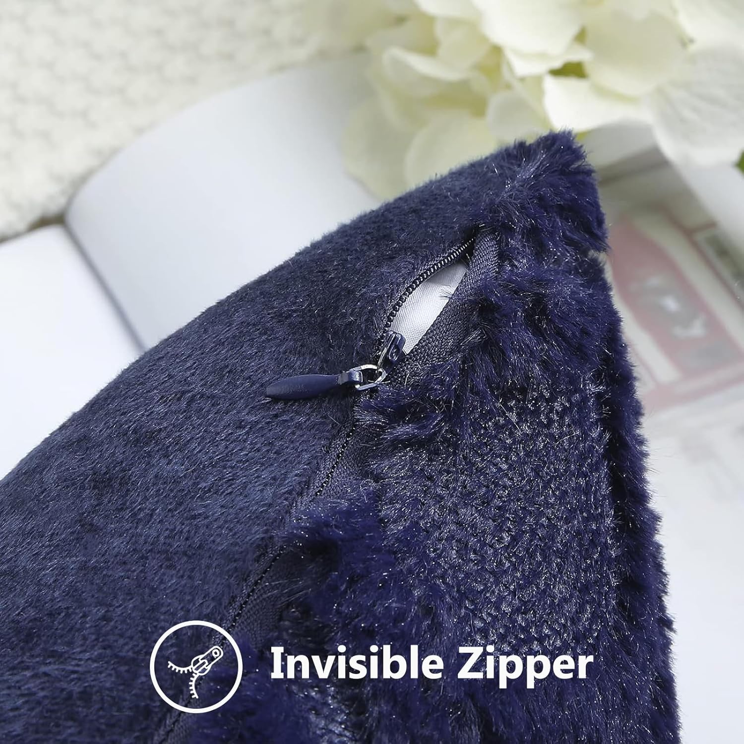 decorUhome Fall Throw Pillow Covers 16x16 Inch Set of 2, Soft Plush Decorative Faux Fur Navy Blue Solid Couch Pillow Covers, Accent Farmhouse Neutral Square Euro Pillow Cases for Sofa Bed Living Room