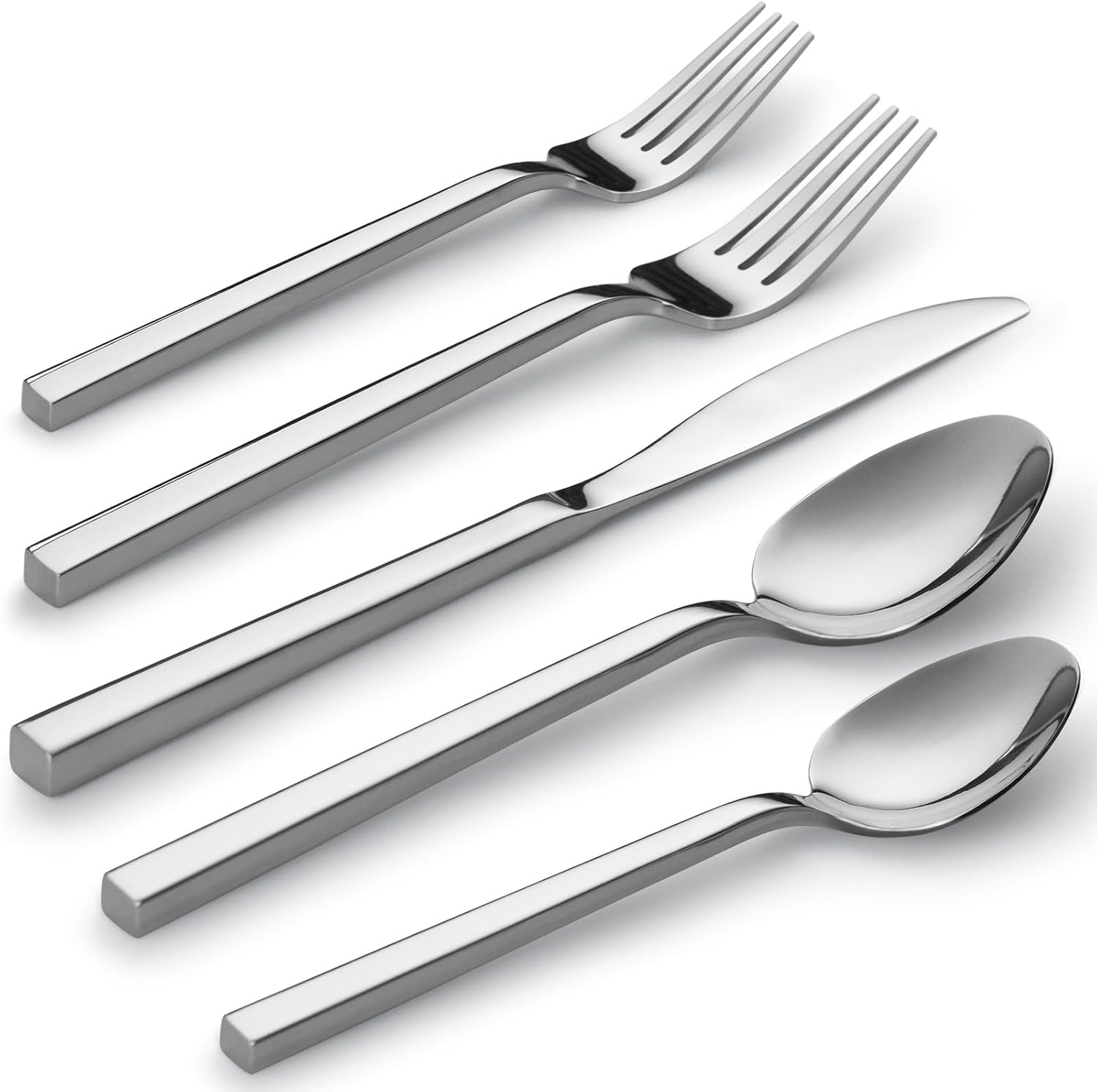Alata Cube 20-Piece Forged Stainless Steel Flatware Set Cutlery Set,Silverware Set Service for 4,Mirror Finish,Dishwasher Safe