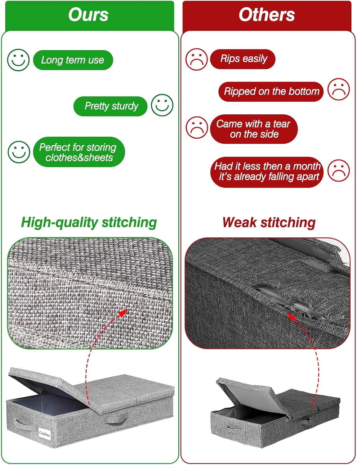 - STURDY STRUCTURE & STURDY HANDLES: 3 Reinforced sewn-in handles make it easy maneuverability and convenient for you to carry and pull out from under the bed; handy bins make excellent blanket organizers and storage; Lasts longer than underbed storage containers plastic; Keep your bedroom neat and tidy with storage bins with lids that fit your room's existing decor and theme