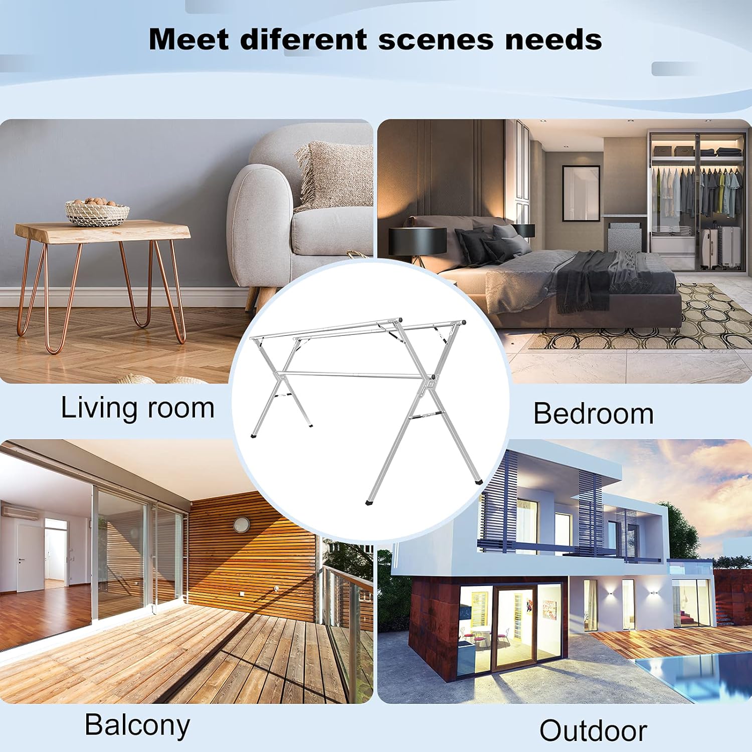 - 👗Sturdy & Heavy-duty - Laundry drying rack outdoor is made of stainless steel, rust-proof and durable. It is strong heavy-duty to hold blankets, sheets, jeans, sweaters, and not wobbly at all when placed outside, even meets a strong wind.