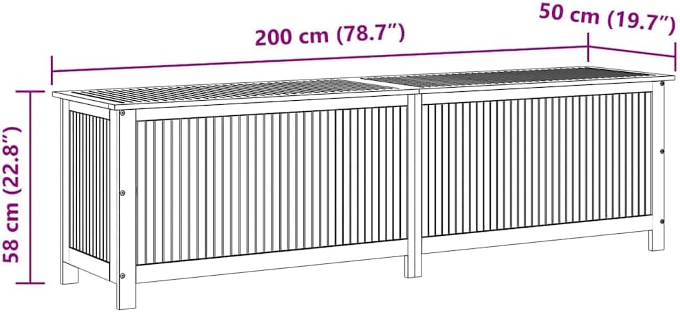 vidaXL Outdoor Storage Box, Deck Box with Gas-Lift Lid, Storage Chest with Water-Resistant Zippered Bag Inside, 78.7''x19.7''x22.8'', Solid Acacia Wood
